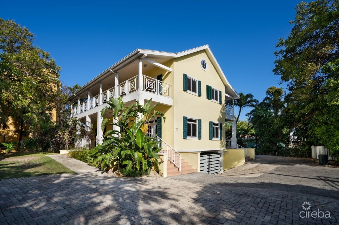 Unique opportunity to lease a stand alone building in Central George Town. Styled after a Cayman cottage, with reinforced concrete and block foundation, this hurricane rated two storey building features an underground car park with six spaces and double electric metal entrance gate. The ground floor wrap around terraces open onto a shaded private lawn. Eleven additional parking spaces are located around the building. Fit out with offices, restrooms and kitchen.