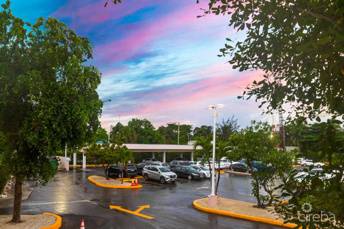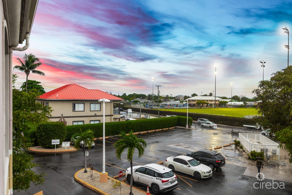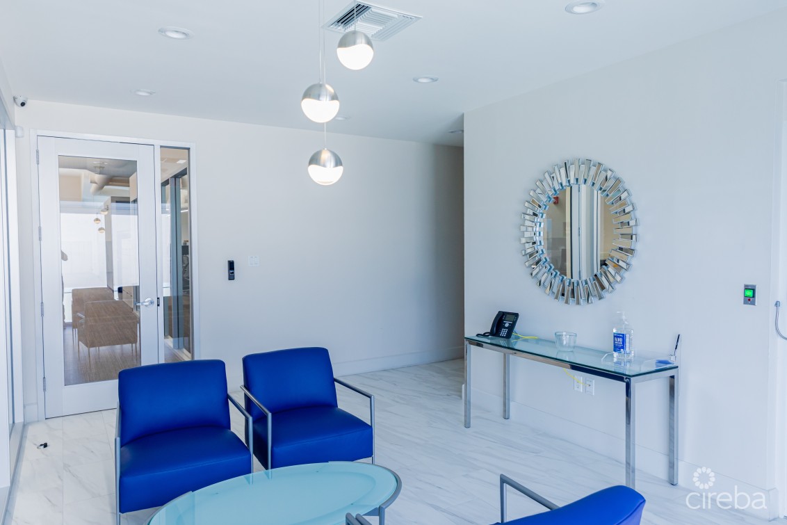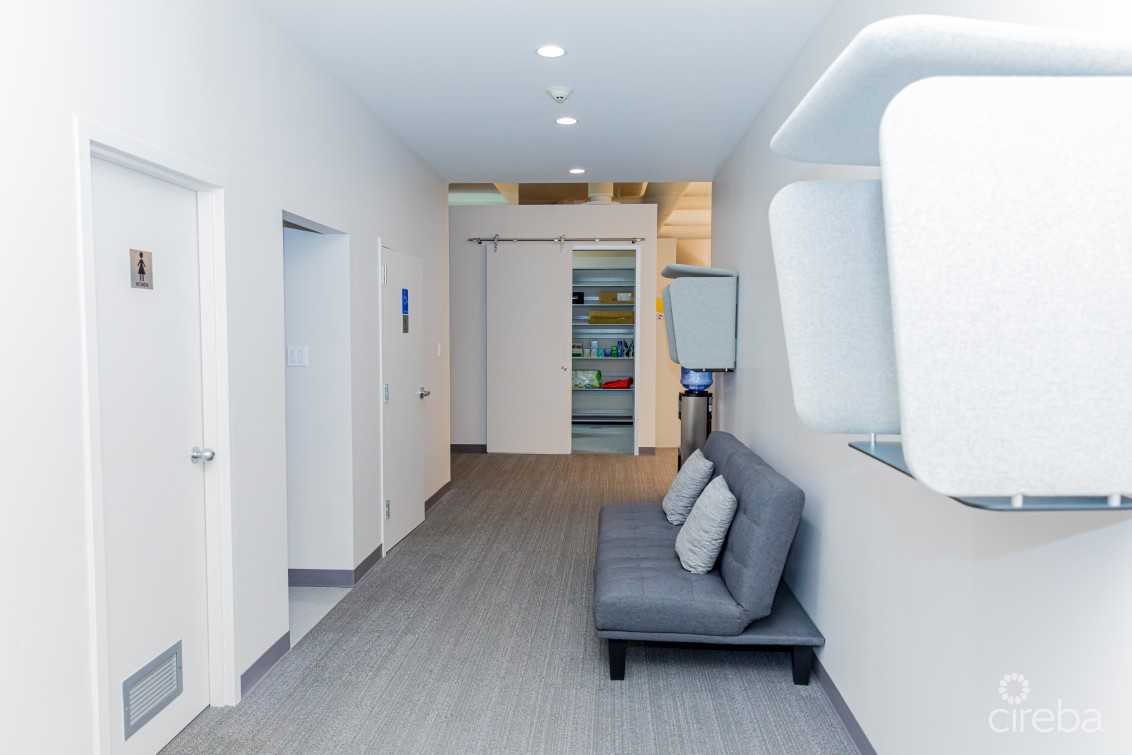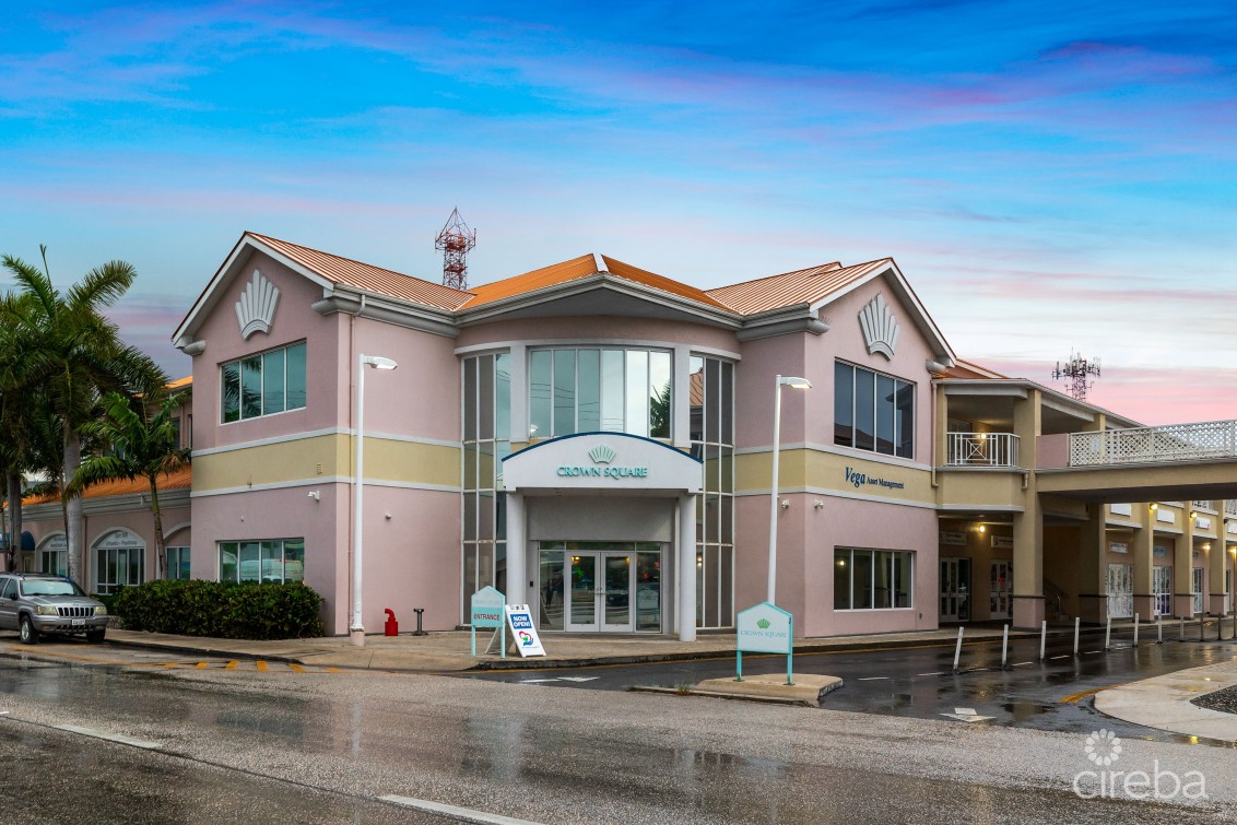 Crown Square is located toward the southern end of Eastern Avenue on the fringe of George Town. This flexible open plan space is partial vanilla shell fit out with wood floors and ceiling heights of approximately 17ft. Conveniently located on Eastern Avenue a busy connector road between Central George Town and West Bay Road. The 2nd floor unit has multiple bathrooms, lower level room previously fit-out as a gym for employees and changing rooms, kitchenette and areas that were previously converted to meeting rooms, along with a secured entry with reception/waiting room and elevator access directly into the unit from the ground floor. Ample on-site parking with covered parking available. This suite feature a back up generator.
