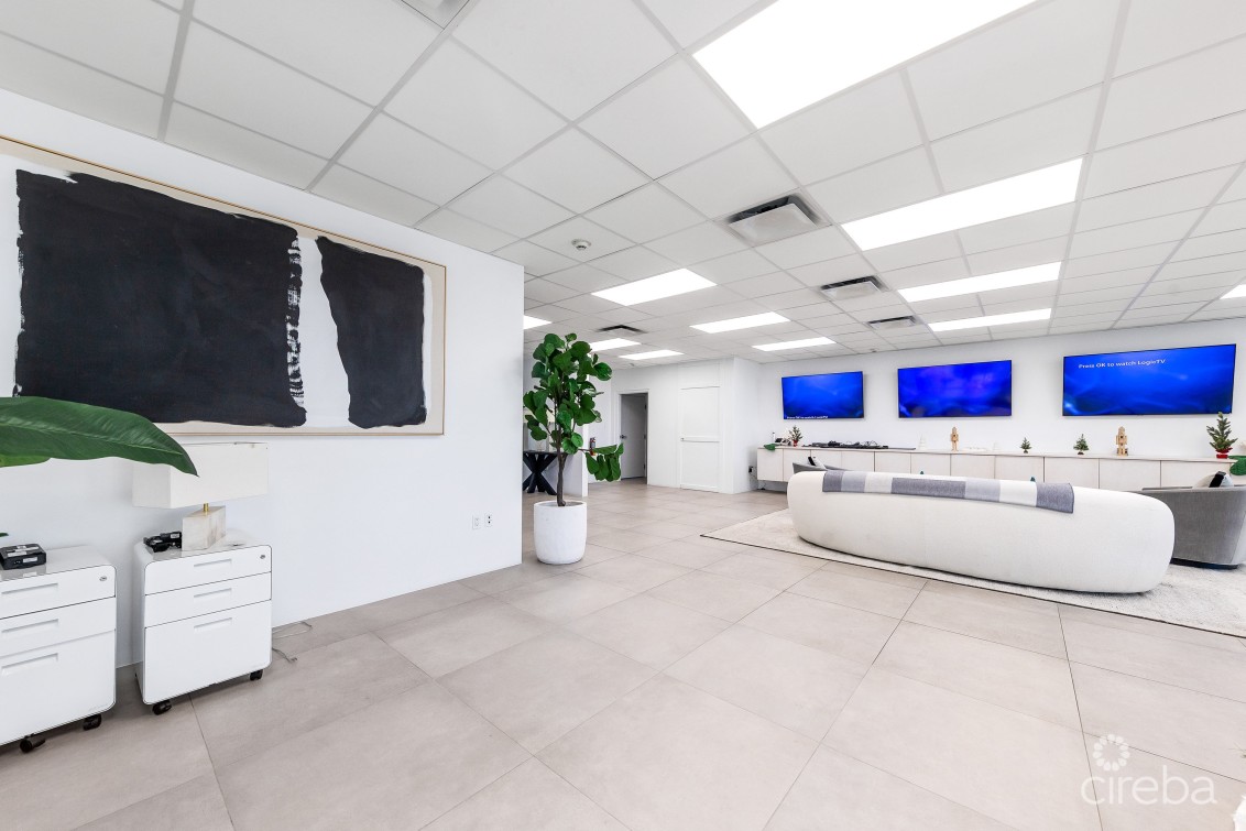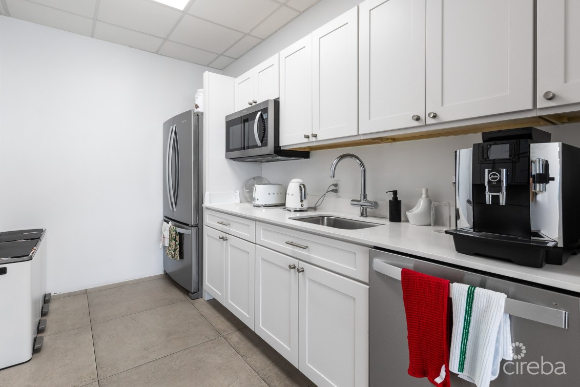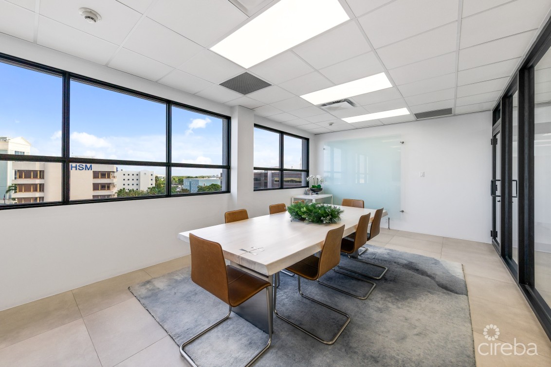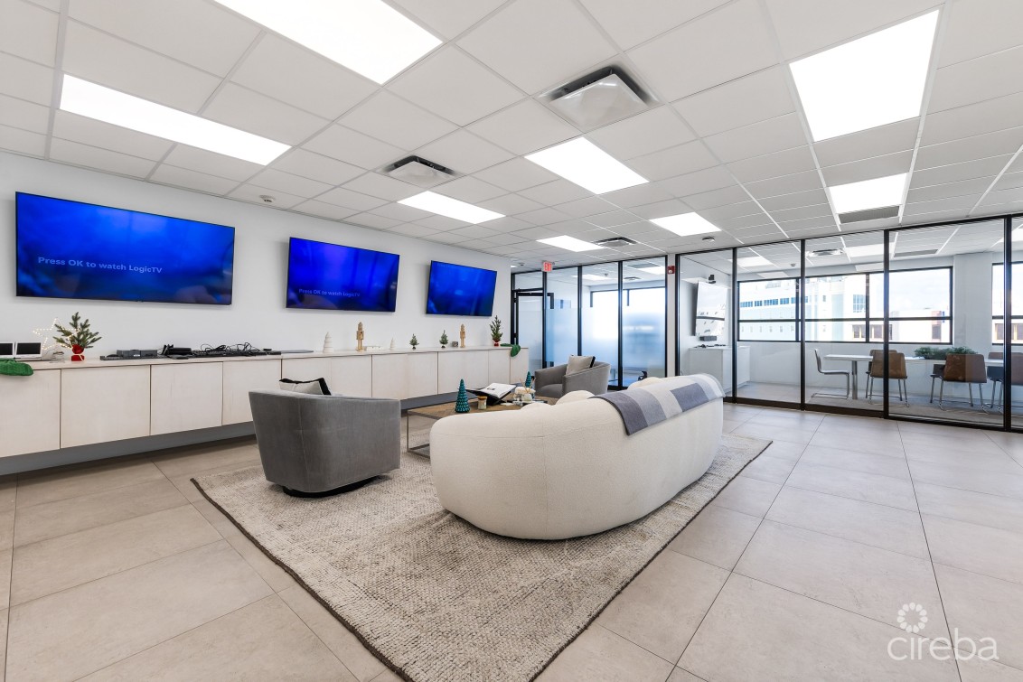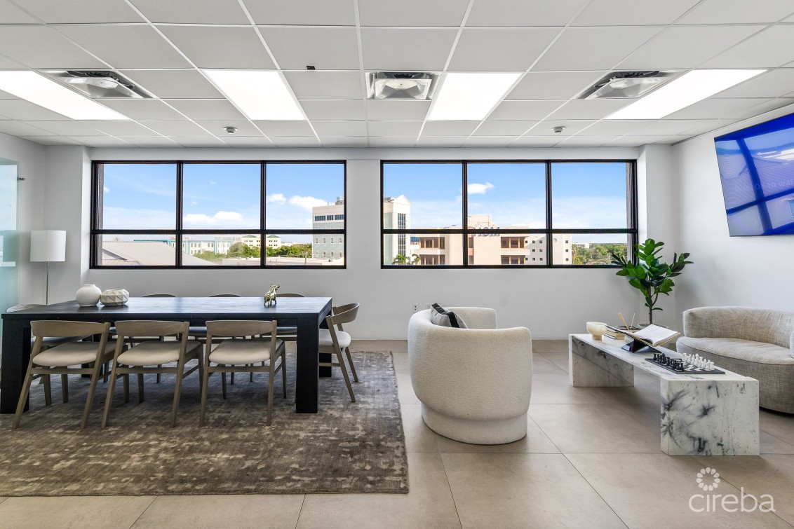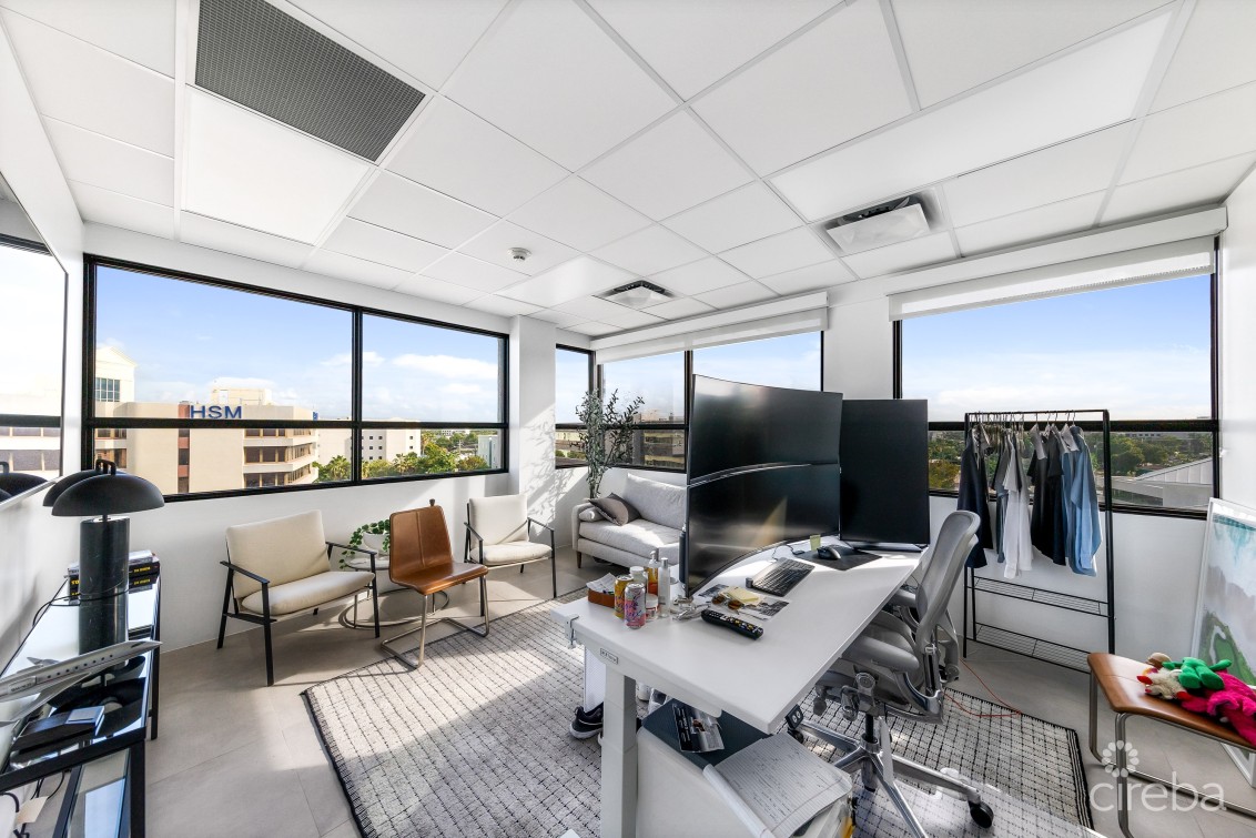 Beautiful office space available now! Modern unit featuring abundant natural light overlooking George Town Harbour. Located on the 5th floor of Tower II, the premises is comprised of an open area, boardroom, 3 offices and a kitchen. On-site parking.