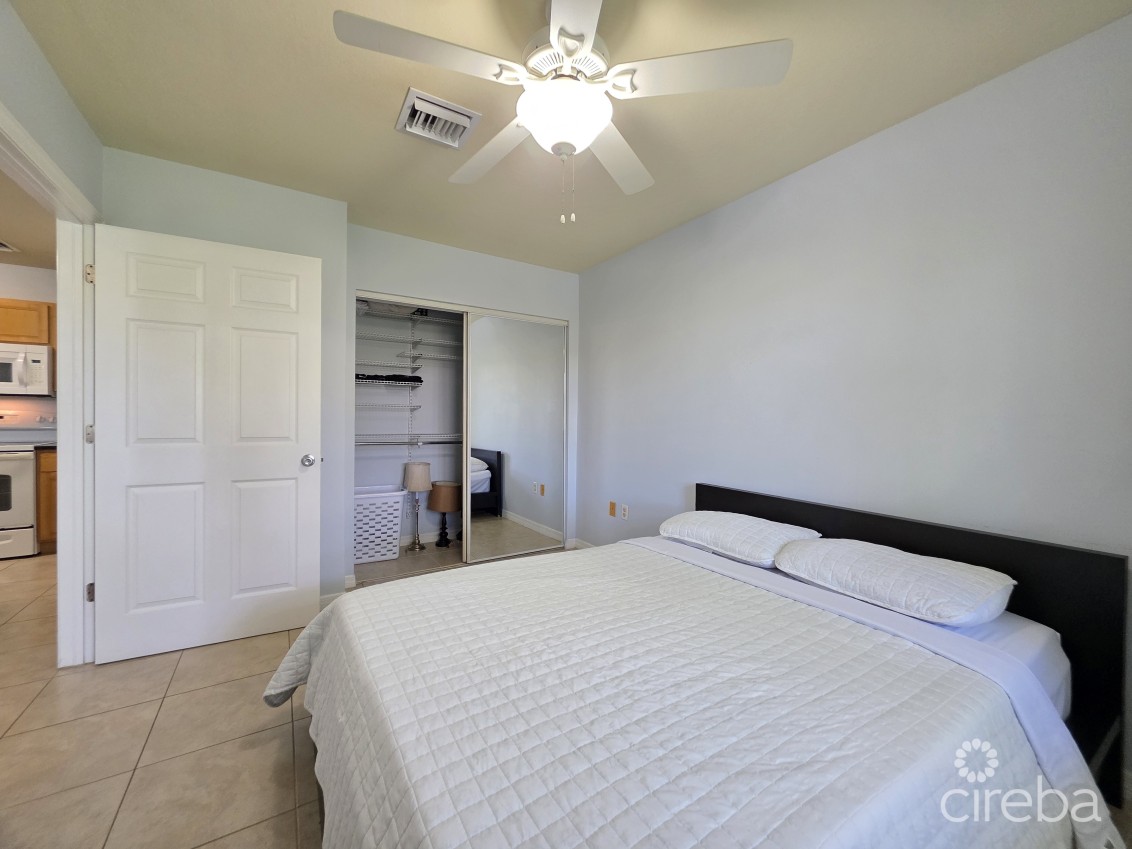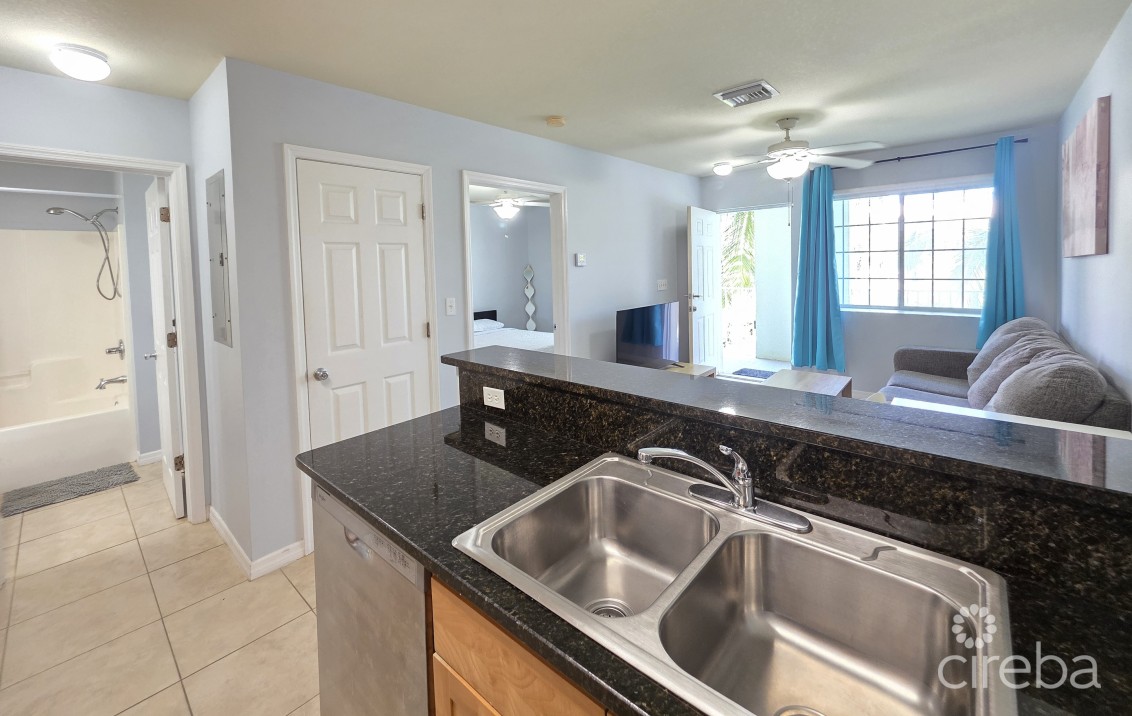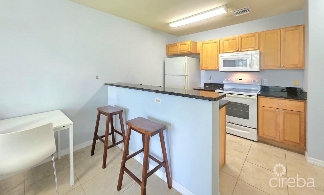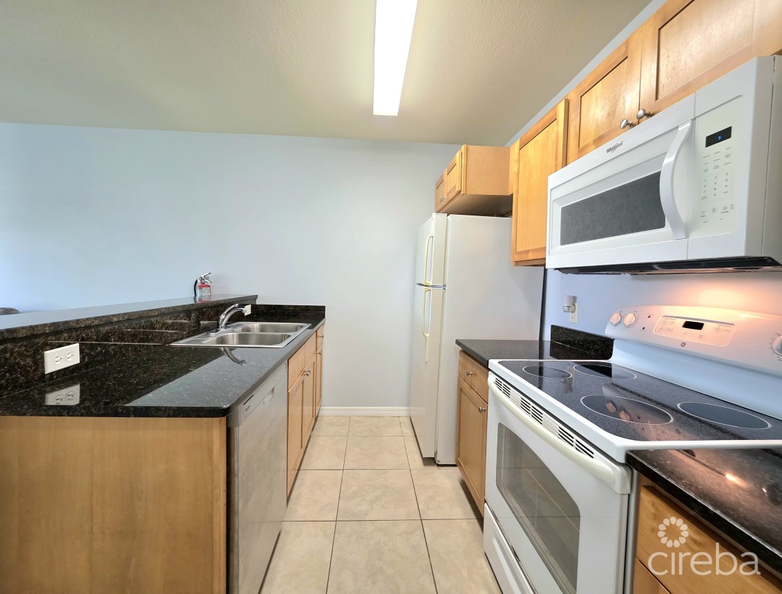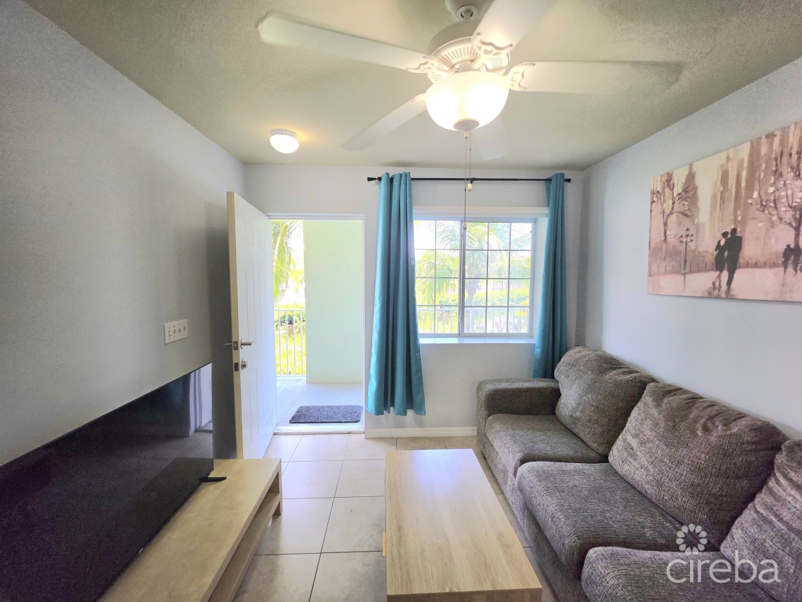 This modern unit is perfectly situated just off Esterly Tibbetts Highway, just a short drive or within walking distance to Camana Bay and Kirk Supermarket. Designed for comfort and convenience, it features an open-plan living area and a full-size kitchen with granite countertops and a dishwasher.