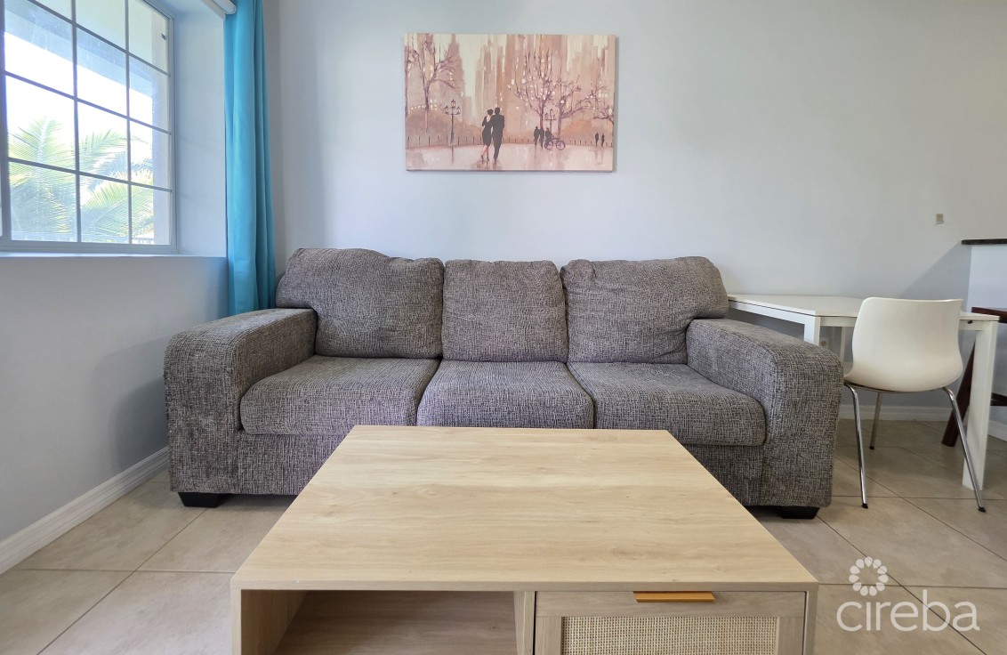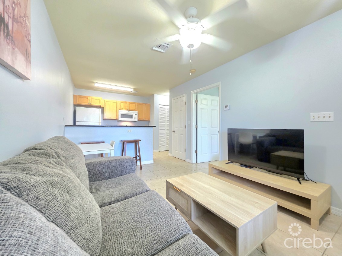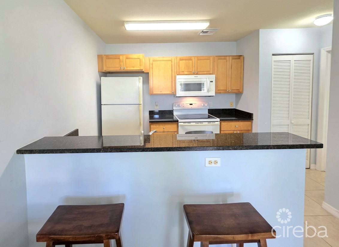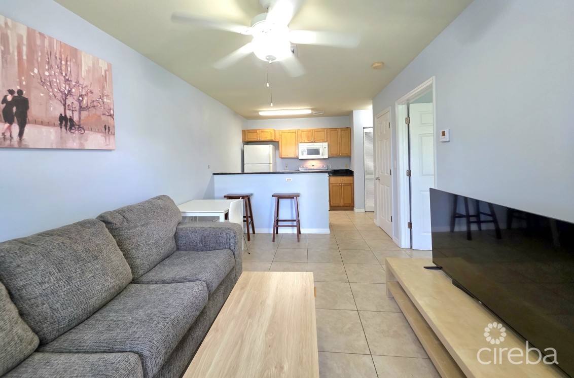 This modern unit is perfectly situated just off Esterly Tibbetts Highway, just a short drive or within walking distance to Camana Bay and Kirk Supermarket. Designed for comfort and convenience, it features an open-plan living area and a full-size kitchen with granite countertops and a dishwasher.