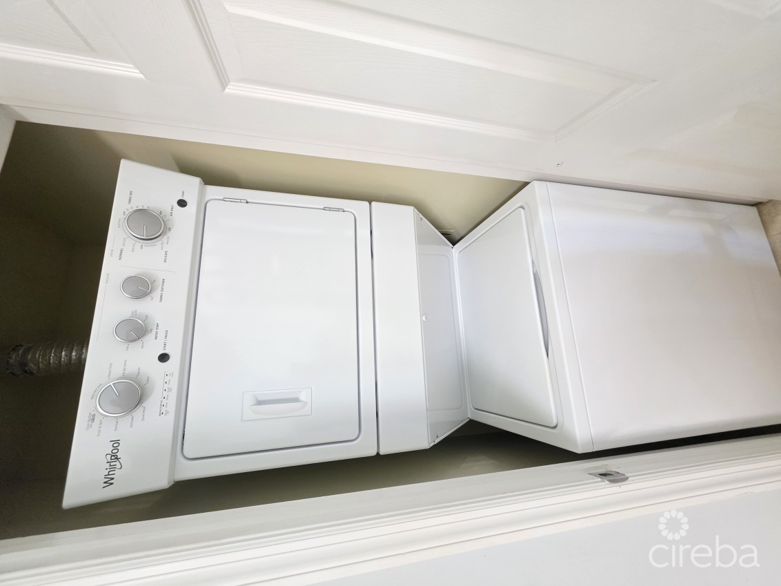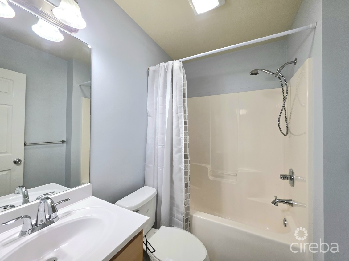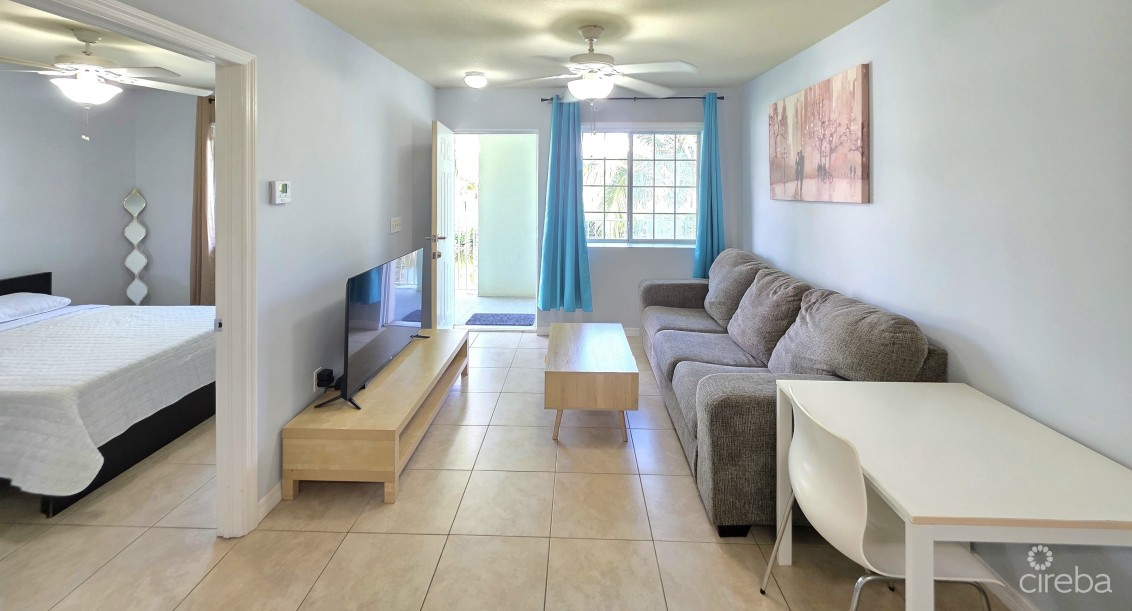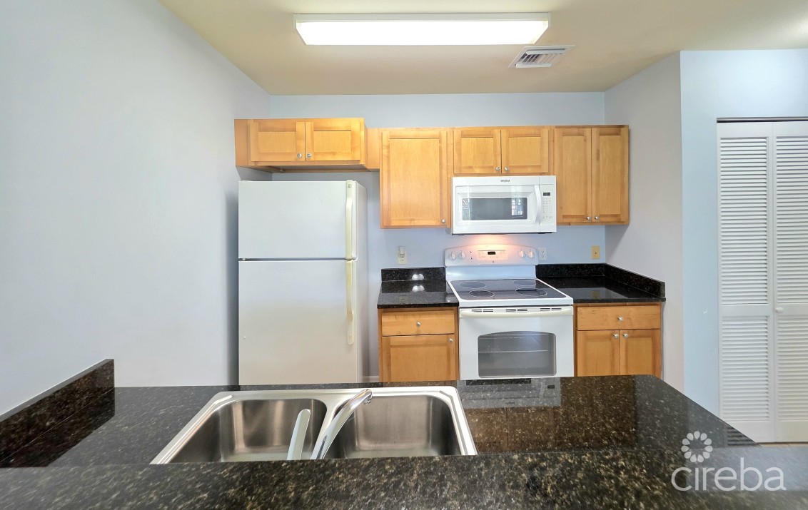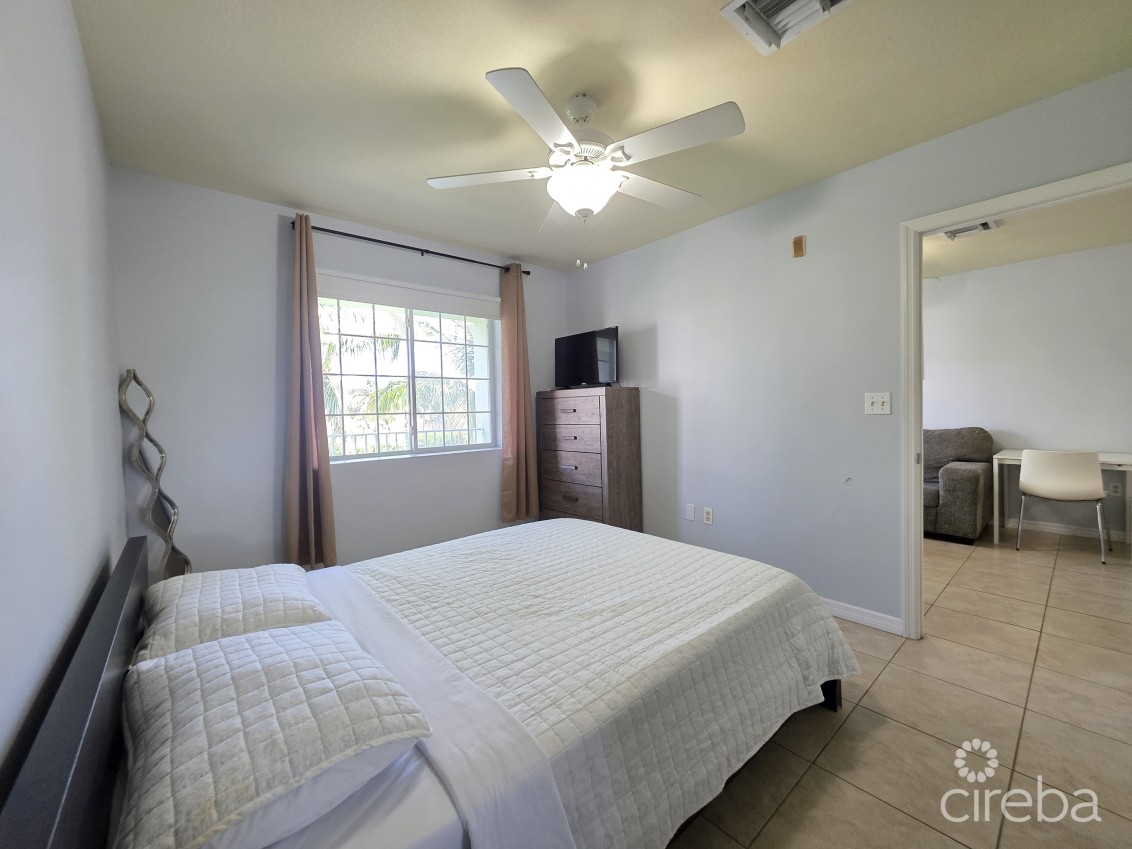 This modern unit is perfectly situated just off Esterly Tibbetts Highway, just a short drive or within walking distance to Camana Bay and Kirk Supermarket. Designed for comfort and convenience, it features an open-plan living area and a full-size kitchen with granite countertops and a dishwasher.
