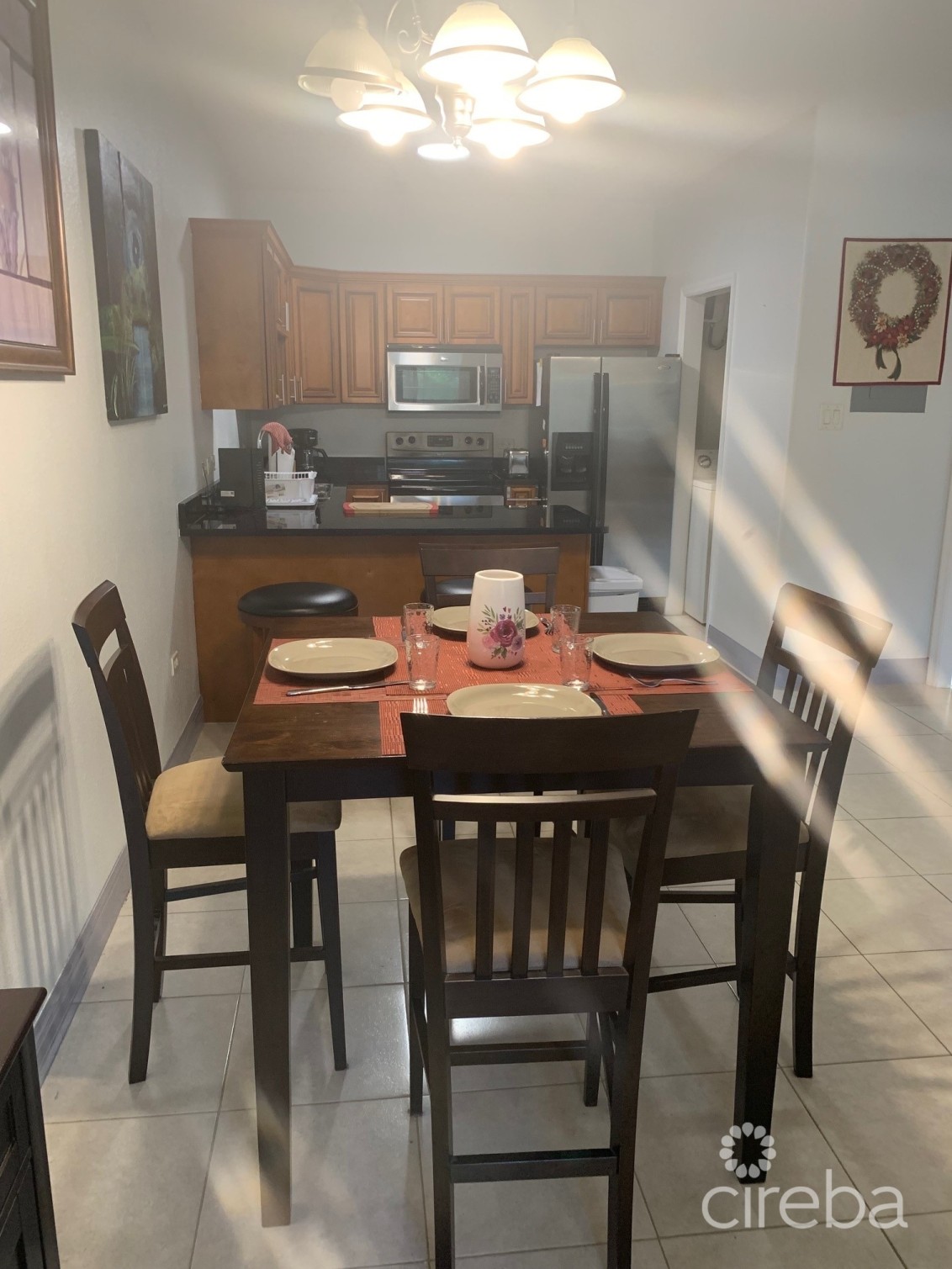 Bright and airy with PRIVATE terrace located on first floor above ground available for start of lease right now! Valencia Heights offers a GYM, a large pool (with a security fence around it) and beautifully landscaped gardens. Valencia Heights is located on Crewe Road, a few minutes from Harbour Walk and Hurley's Supermarket and minutes from schools such as Island Primary, Cayman Prep, Triple C, Island Montessori, Hope Academy and very conveniently located to offices downtown GT and Camana Bay. This unit OFFERS FREE WIFI included in the rent (water and electricity are tenant's responsibility), accepts pets and kids. Call today!
