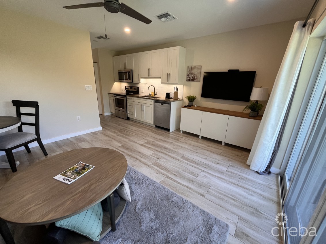 Well appointed and proportioned one bedroom apartment in the highly popular and sought after Downtown Reach development. This unit, and the complex, are a commuters dream being only 1.5 miles from downtown George Town, and the Seven Mile Corridor and Camana Bay beyond. The unit is nicely furnished and well maintained, offering stainless steel appliances, fully front load washer and dryer and beautiful pool, cabana and gymnasium all in a stylish gated setting.