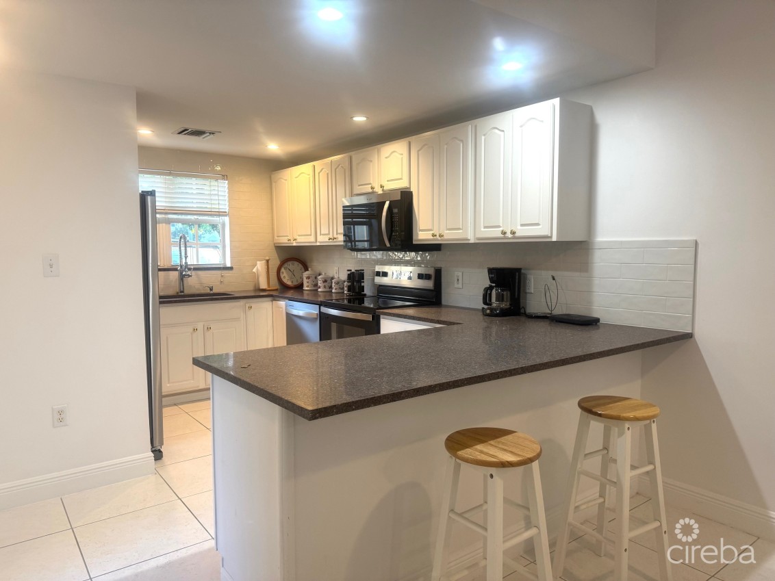 Discover your dream home at Hope Springs 10! This stunning 2-bedroom, 2.5-bathroom townhome has been newly renovated and offers modern comfort and style just off Smith Road in George Town, Grand Cayman. Enjoy the convenience of being just minutes from downtown and only a short 10-minute drive to Camana Bay and the beautiful Seven Mile Beach.