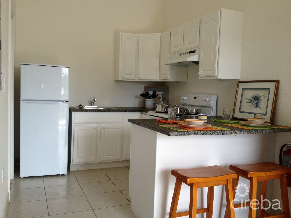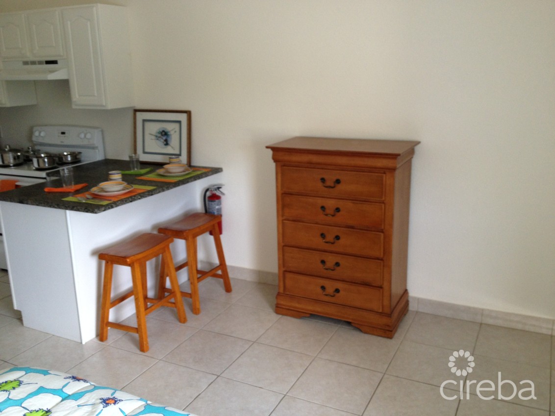 Studio condo available for long term rent in George Town near AL Thompson. Unit offers kitchen cabinetry, granite countertops, energy efficient tankless water heater & queen-sized bed. One flat screen TV. Suitable for one or two people. No pets and No children and No Smokers and No NAU please. Coin operated laundry on premises. 12 Month lease with security deposit of CI$1600. Basic TV cable package & internet included, all other utility costs are separate paid by tenant. Located conveniently off Sound Way on Whitman Seymour Road. Available immediately.