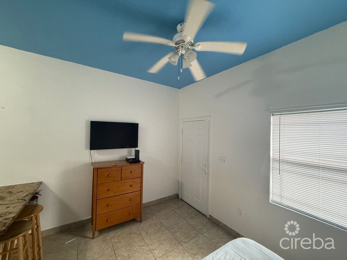 Studio condo available for long term rent in George Town near AL Thompson. Unit offers kitchen cabinetry, granite countertops, energy efficient tankless water heater & queen-sized bed. One flat screen TV. Suitable for one or two people. No pets and No children and No Smokers and No NAU please. Coin operated laundry on premises. 12 Month lease with security deposit of CI$1500. Basic TV cable package & internet included, all other utility costs are separate paid by tenant. Located conveniently off Sound Way on 48 Whitman Seymour Road. Available immediately.