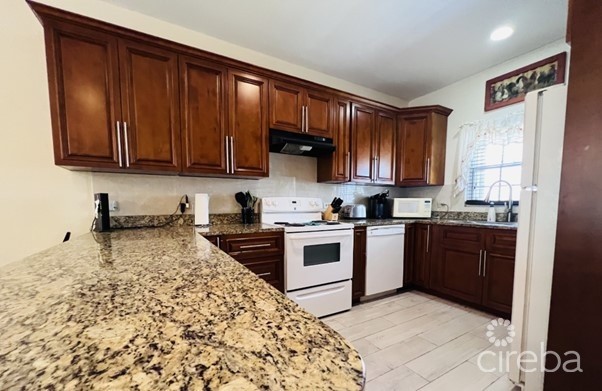 Gated small complex. This 2 bed, 2.5 bath townhouse is fully furnished and available for monthly rent as from NOW. Includes all utilities.