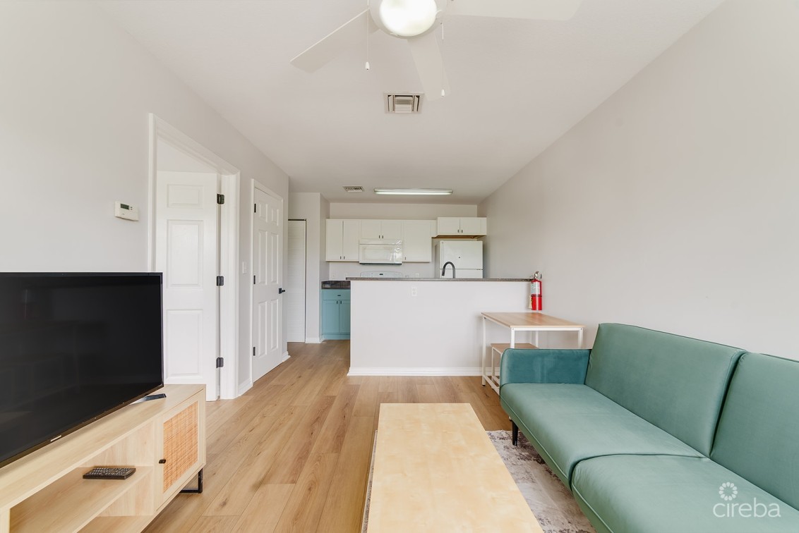 Located in Camana Bay Area right off of the Esterly Tibbetts Highway, this 1-bedroom condo offers a practical layout, modern finishes, and a comfortable living environment.