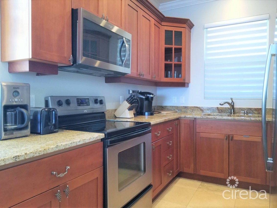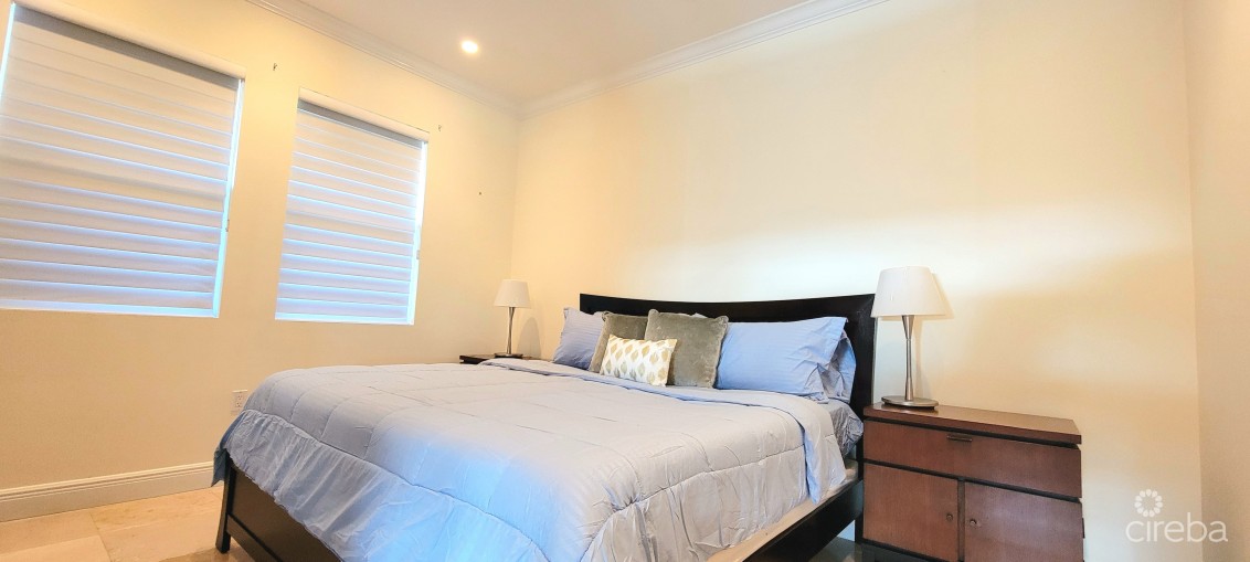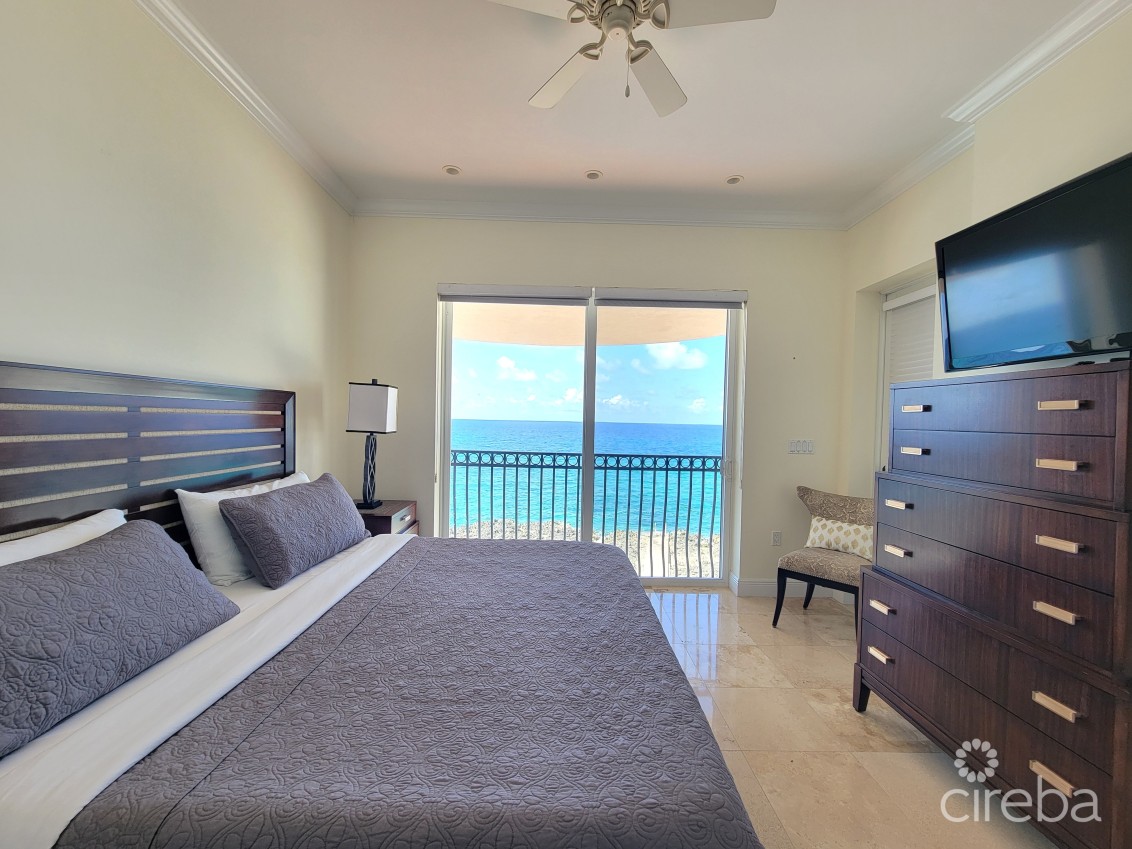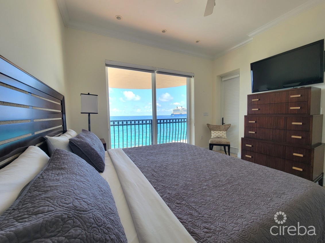 Experience waterfront living in this stunning 2bed, 2bath condo located beside FIN. Enjoy breathtaking ocean views, a spacious patio for sunset watching, and modern comforts throughout. Features include 70inch smart TV in livingroom, smart TVs in bedrooms with king size beds. Full kitchen with large breakfast area and generous dining table, great for entertaining! Pool, jacuzzi, snorkeling access. Two allocated parking spots, prime location just minutes to Smith Cove, George Town and Seven Mile Beach.