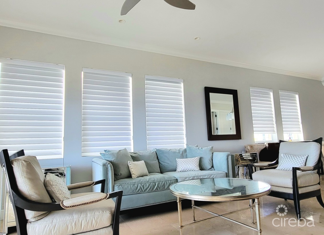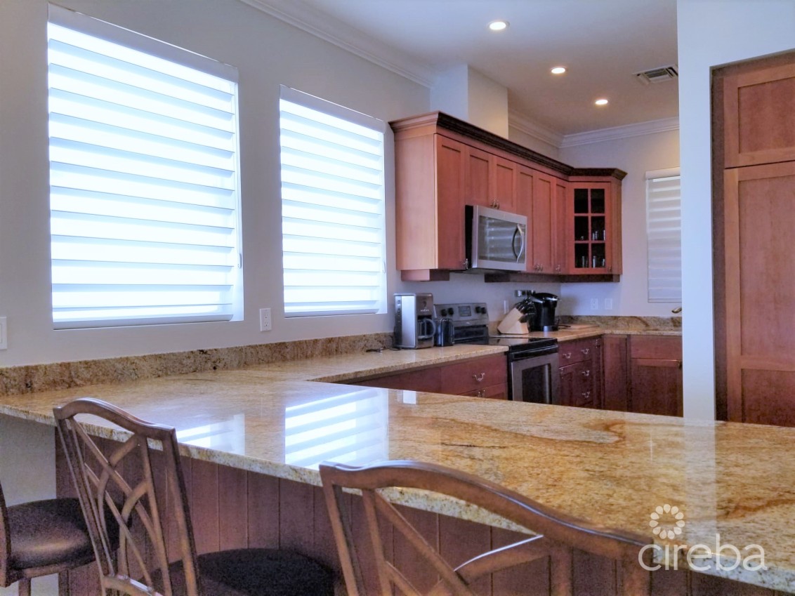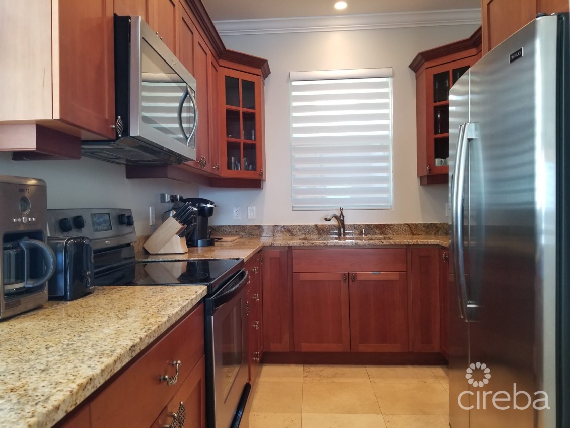 Experience waterfront living in this stunning 2bed, 2bath condo located beside FIN. Enjoy breathtaking ocean views, a spacious patio for sunset watching, and modern comforts throughout. Features include 70inch smart TV in livingroom, smart TVs in bedrooms with king size beds. Full kitchen with large breakfast area and generous dining table, great for entertaining! Pool, jacuzzi, snorkeling access. Two allocated parking spots, prime location just minutes to Smith Cove, George Town and Seven Mile Beach.