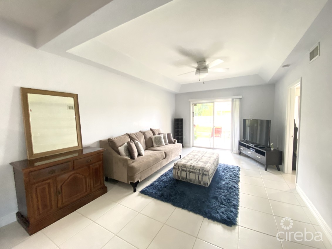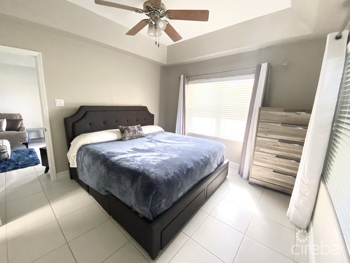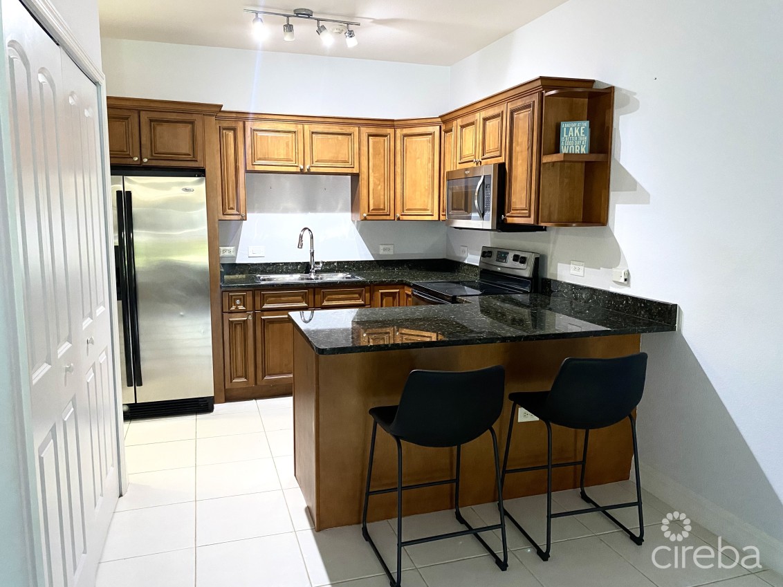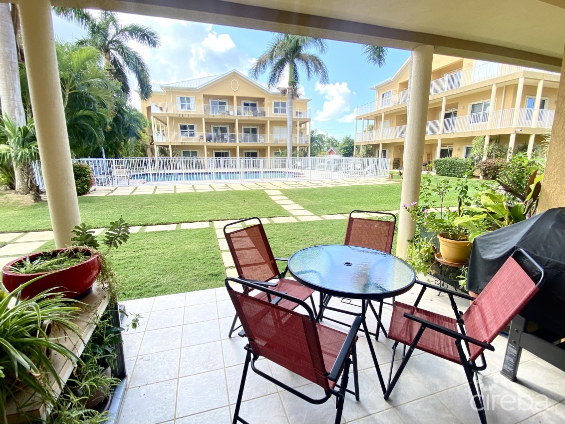 A spacious ground-floor condo in Valencia Heights available for rent immediately. Recently renovated and tastefully decorated, this two-bed, two bath home is move-in ready. It features a private patio with direct walk-out access to the residences large pool. The community of Valencia Heights also boasts lush gardens and palm trees. Located close to George town and Grand Harbour, living here, you are minutes from the airport, schools, grocery shops, restaurants, and more. Ideal for a couple or small family, Valencia Heights 25 is available from 1 November for a 12-month lease at CI$ 2,800/ month excluding utilities. No pets, please.