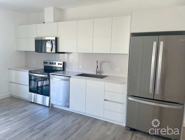 Located a few minutes from Grand Harbour, modern 3 bed, 3 bath end unit in Sunnyview Phase 2. Ground floor with spacious dining and living area, kitchen with Italian cabinets, stainless steel appliances, 75inch TV and your own private patio. First floor with 2 bedrooms (1 queen bed and 1 king bed) each with their own bathroom and TV. Second floor with a large bedroom with a king bed, en-suite bathroom and a separate storage room. Pets (no more than one, may be allowed depending on size and total number of occupants) Split AC units. 2 parking spots at your door. Communal pool and nice lawn area. Ready to move immediately.