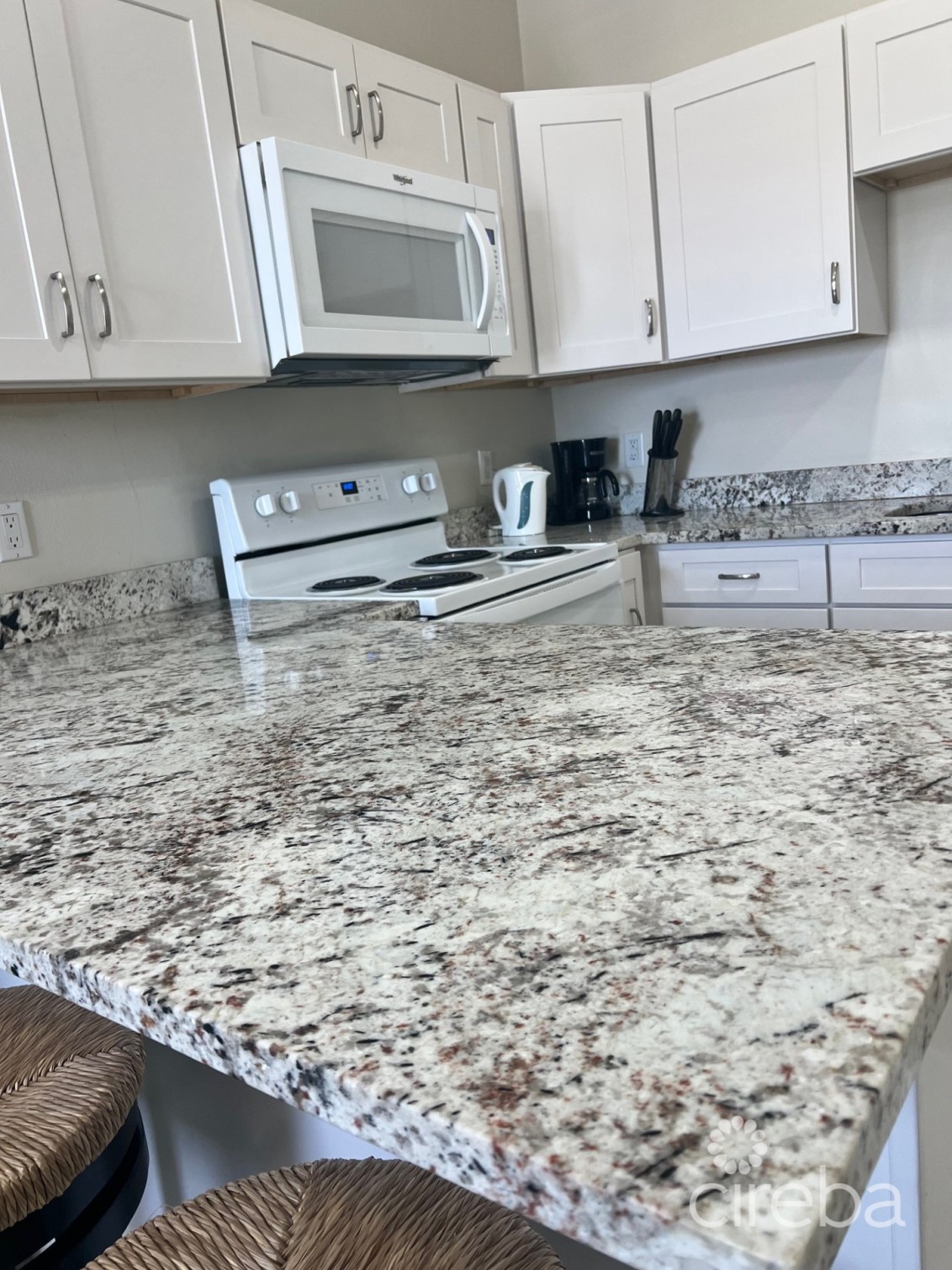 1-bedroom, 1-bathroom, ground floor apartment located at The Summit, available for 12-month lease. Bedroom comes equipped with a queen-size bed and generous closet space. Tile flooring throughout, granite countertops in the kitchen, washer/dryer in unit, fully stocked with kitchenware, dishes, linens, and towels. Enjoy a quick stroll over to the communal swimming pool. Located in North Side, conveniently near Clifton Hunter High School, Botanical Gardens, and just minutes from Health City East End. No pets and No smoking. Tenant responsible for cable TV service, internet, and all other utilities.