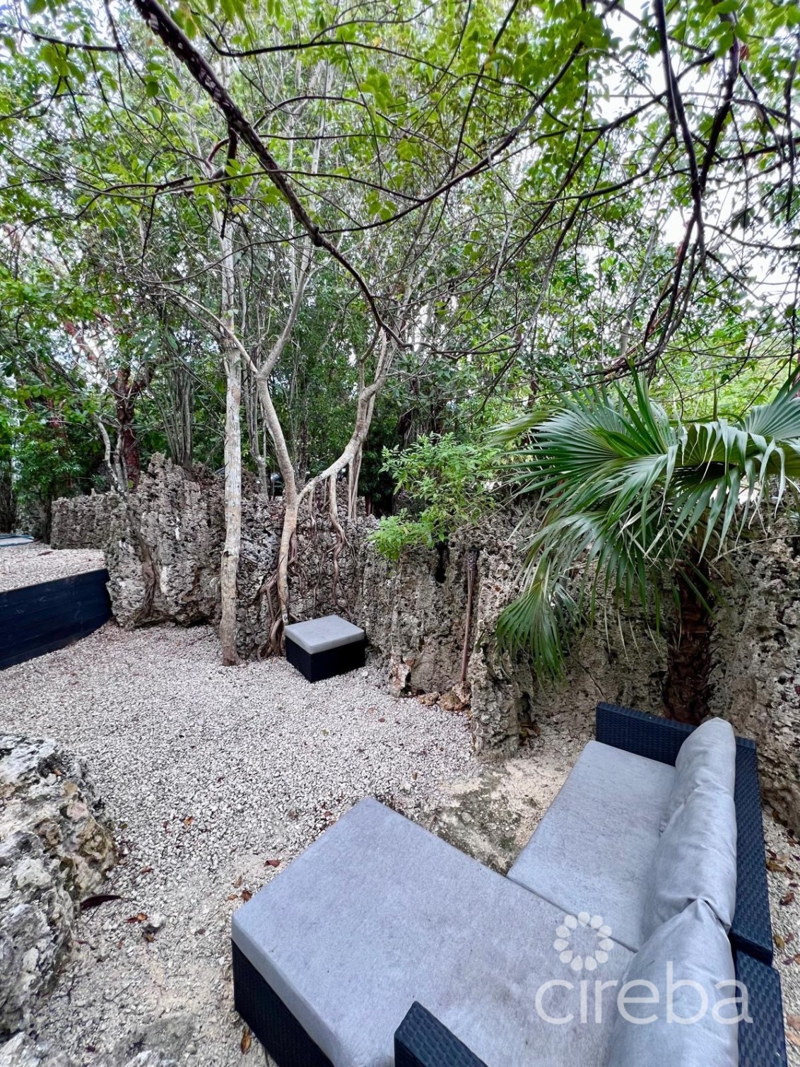 Rock walkways and landscaped grounds