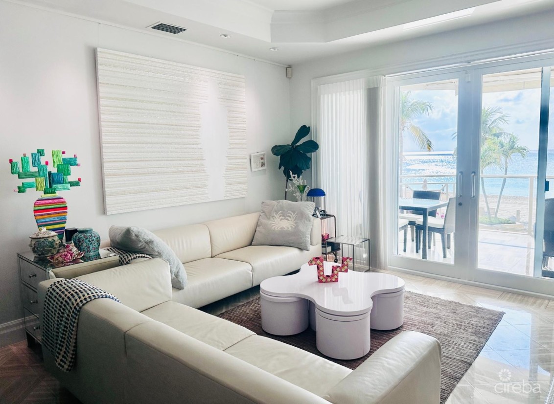 Stunning 3 bedroom oceanfront suite available for a 1 year long term lease. Beautiful interior furnishings on the finest white sand on 7 Mile Beach. With no daily tourist rentals, this is a unique opportunity to live in discreet privacy and enjoy the best of 7 Mile beach life without tourist rentals in the complex . Other additional amenities including 24/7 security, tennis and pickleball courts, health center and owners lounge including a large screen TV and billiard table. Walking distance to restaurants, shopping in Governors Square and Camana Bay. Don't miss this outstanding opportunity. This prestigious suite will not last long.
