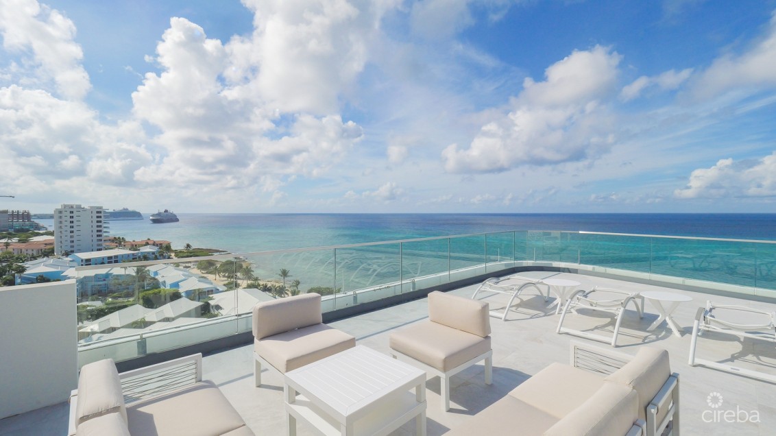 Awaken to the soothing sound of waves and panoramic views of the Caribbean Sea. This corner unit villa boast wrap-around floor-to-ceiling windows that frame the natural beauty of Seven Mile Beach like a masterpiece. Allow the azure hues of the ocean to become the backdrop of your dream-come-true living experience. Indulge in the epitome of luxury in this rarely available exquisite three-bedroom, villa offering breathtaking ocean front views. Amenities inclued an ocean front pool, roof top terrace, and onsite gym.