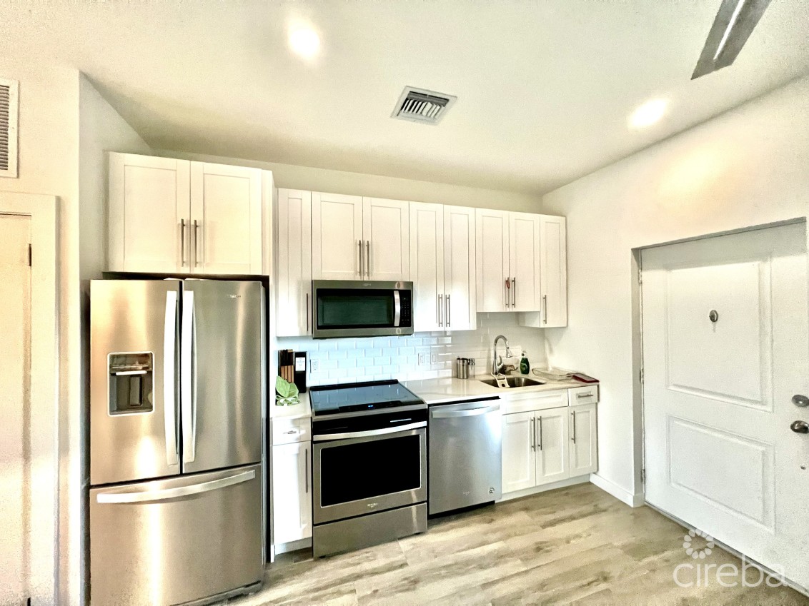 19 North 305 is a third-floor rental perfect for singles. It has one bedroom, one bathroom, and an open living/kitchen area. The bedroom includes a queen bed, lots of closet space, and a balcony with views of the gardens and lake. There's plenty of parking for both residents and guests. Youll also enjoy outdoor amenities like a large pool, lake, lounge area, and a nearby gym. Located in West Bay, it's a 5-minute drive to Camana Bay and close to Seven Mile Beach. Small pets are allowed with a non-refundable deposit. Available now for CI $2,300 per month, plus utilities.