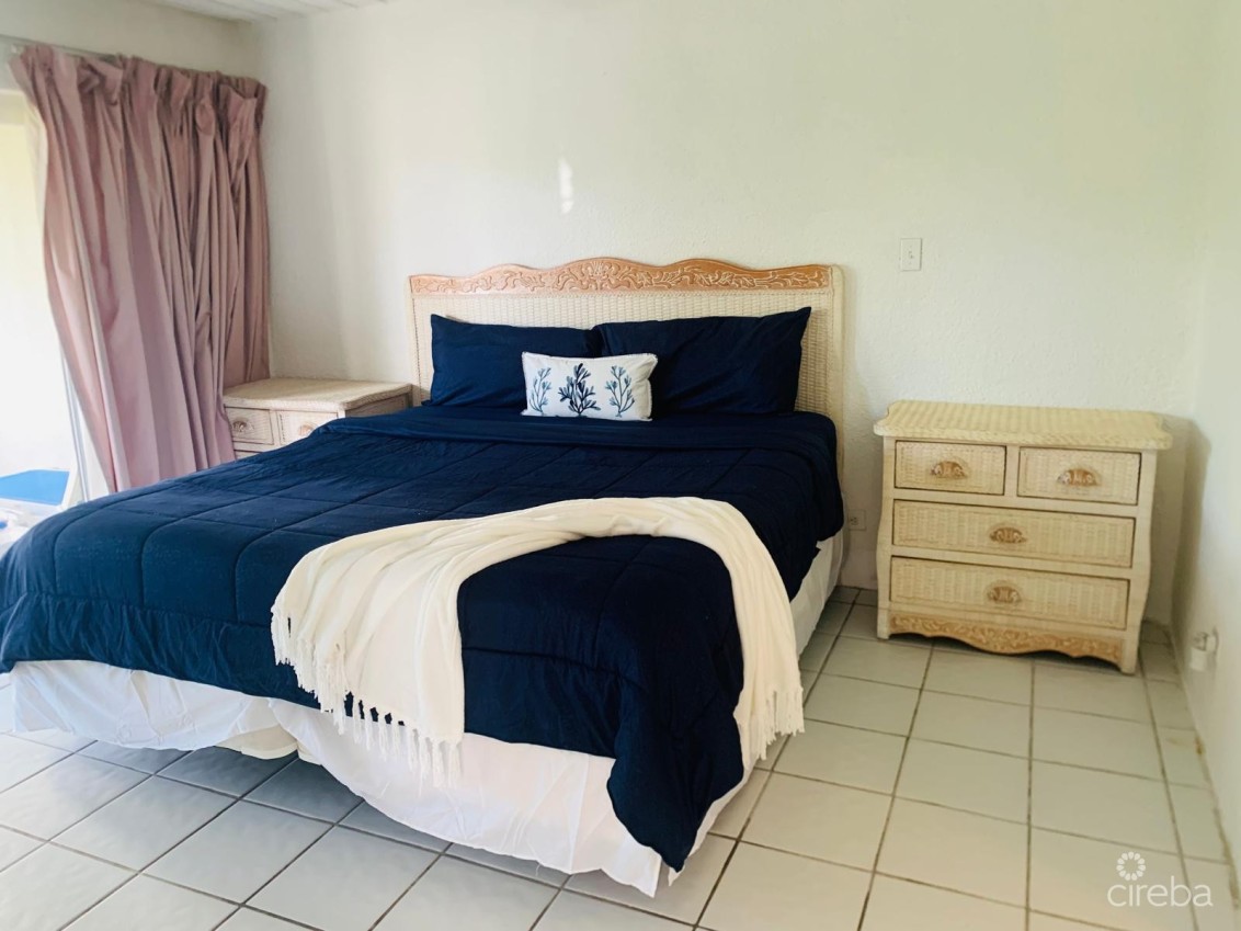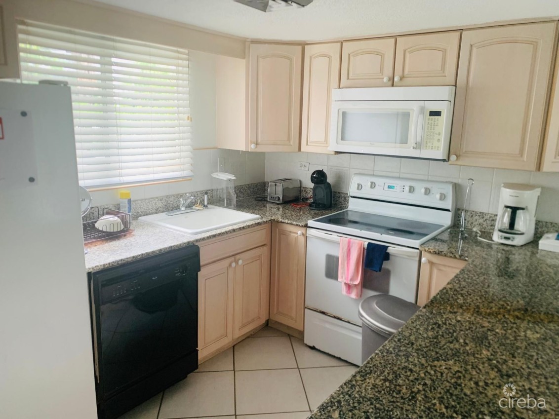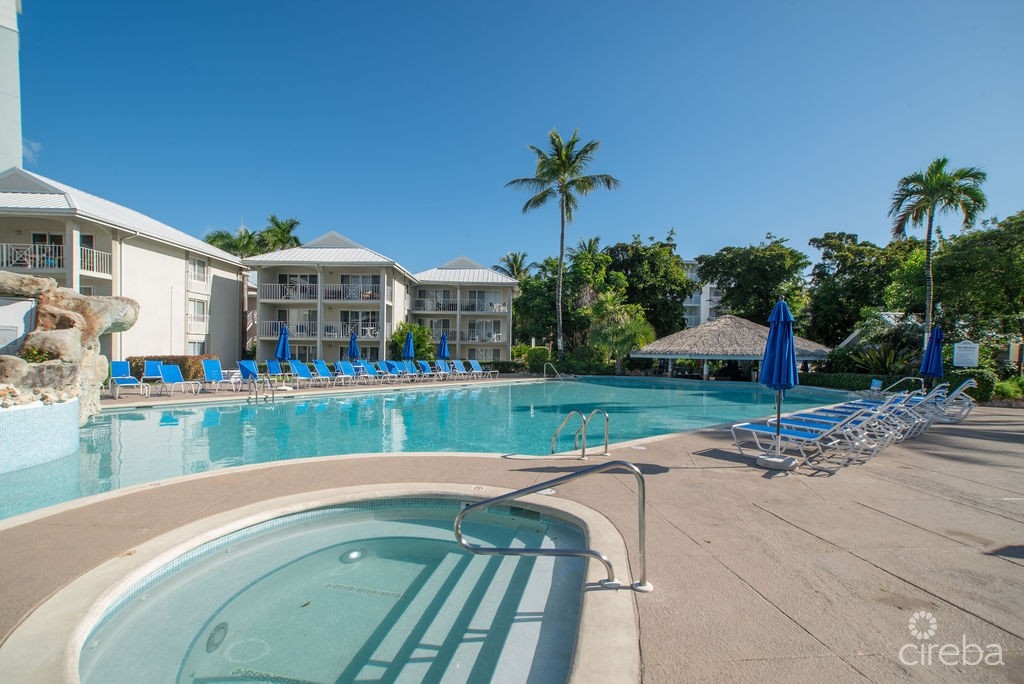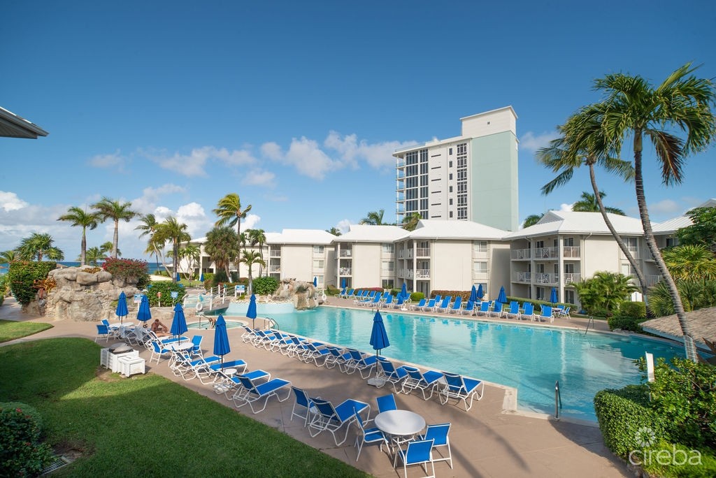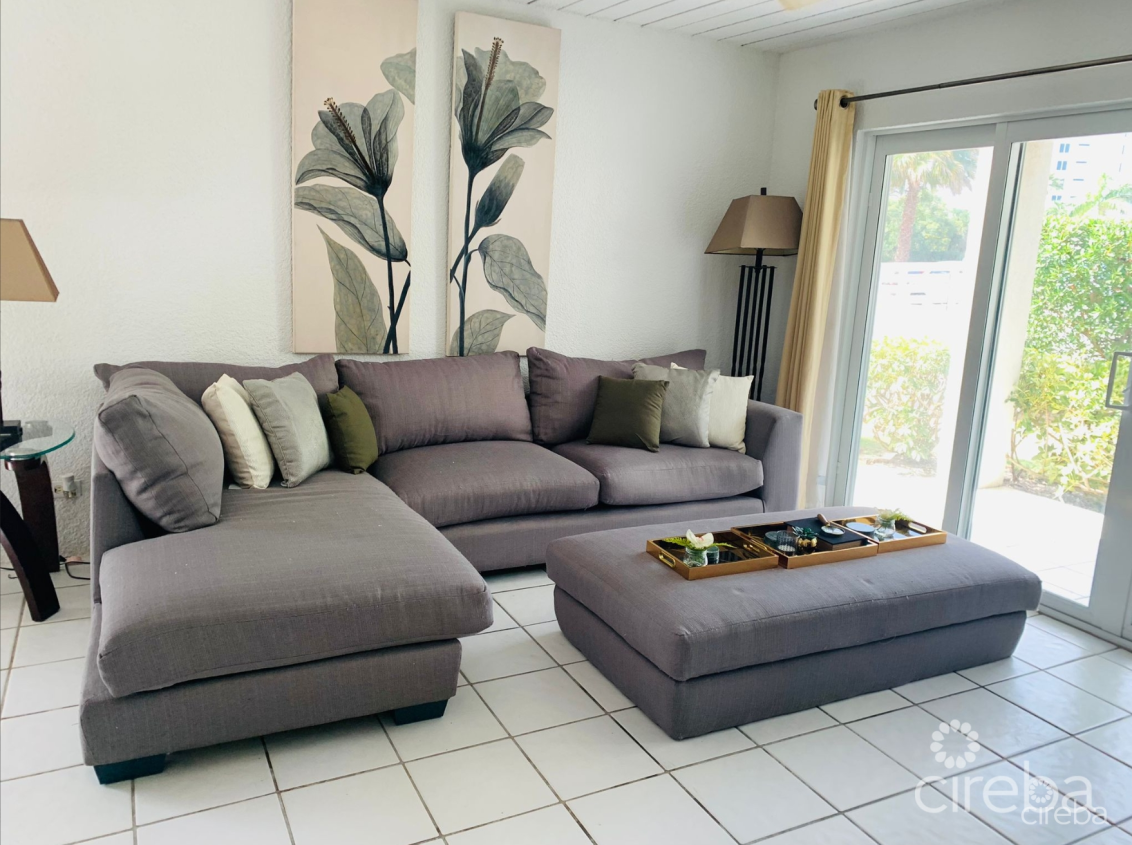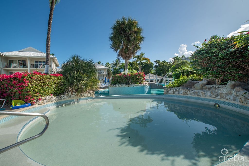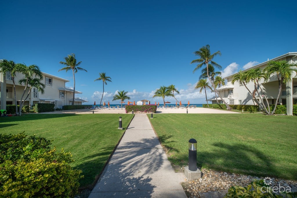 Ground floor unit with garden view on Seven Mile Beach. Enjoy resort amenities in a condo sytle setting. Private beach with loungers for tenants/guests/owners, large pool with rock waterfall, mini lazy river, kiddie pool, communal BBQ area, full service pool bar and lobby bar with live music. Walking distance to shops and restaurants.