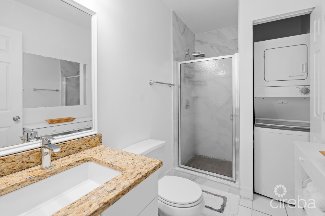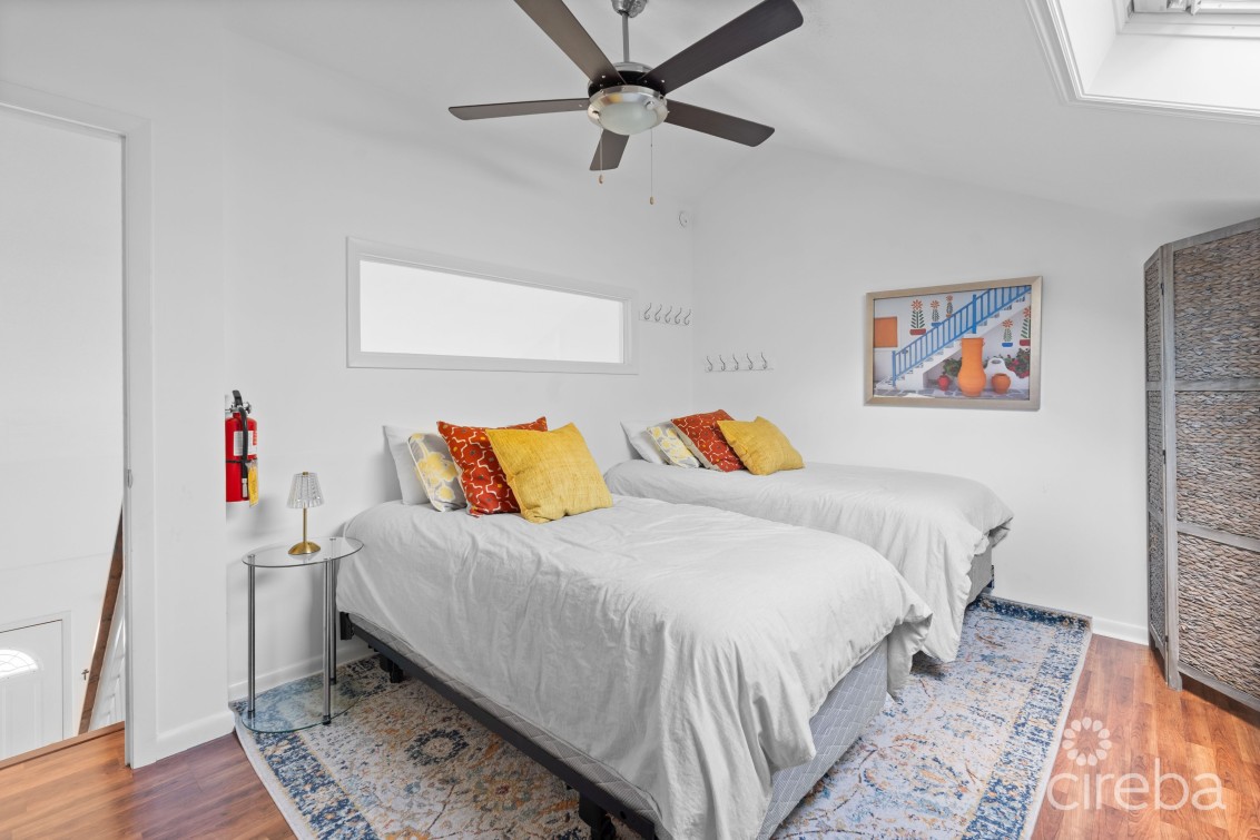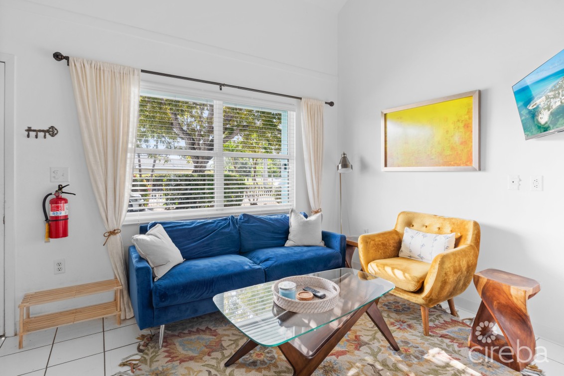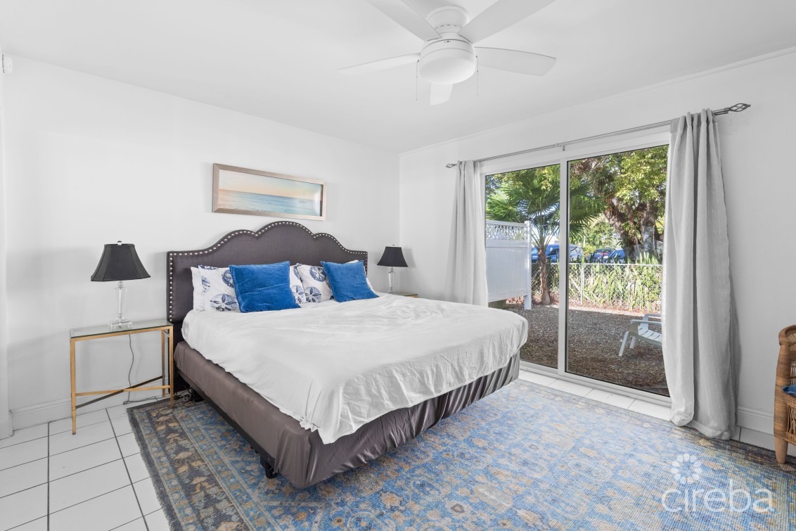 The location really is the standout here. Foster's West Bay grocery store is a 3-minute walk. Cemetery Beach is across the road. You're at the quieter, less crowded end of Seven Mile Beach but still connected to everything. Park right at your door.