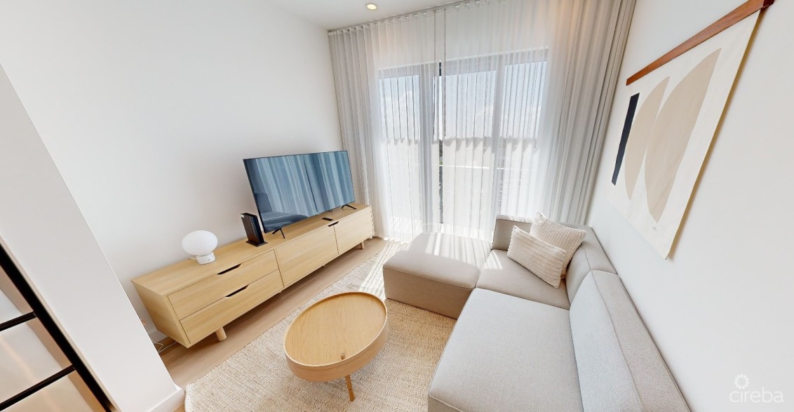 move-in-ready with luxury linens, pillows and kitchenware provided. Residents enjoy a vast array of services and amenities with the added appeal of an address and locale in Camana Bay. Kapoks amenities include a pool, outdoor kitchens, a rooftop observation deck with panoramic views, and a yoga lawn. Residents also have access to two hotel-inspired guest suites for visiting friends and family. Located across from Foster's supermarket, dining, shopping and entertainment as well as schools and medical and sports facilities are just a few steps away.