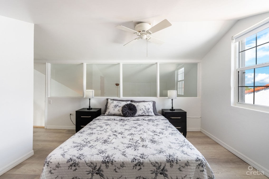 Modern bamboo cabinetry though out the kitchen and bathroom. Built in shelving in the living room for extra storage, custom teak fishing rod holders on the screened in patio. 23 feet dock space included. lots of windows and natural light. Very safe quiet road. Located in Governors Harbour. Walking distance to shopping, beach, school, restaurants, and bars. Lush tropical garden. The master bedroom has a new bedroom set not shown in the photo. The complex has a large, fenced pool facing Mitchells Creek with grassy yard with kid playground and tennis courts located on Cook Quay. Short walk to SMB.