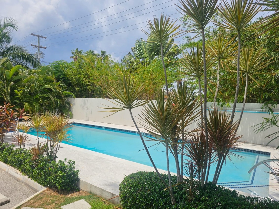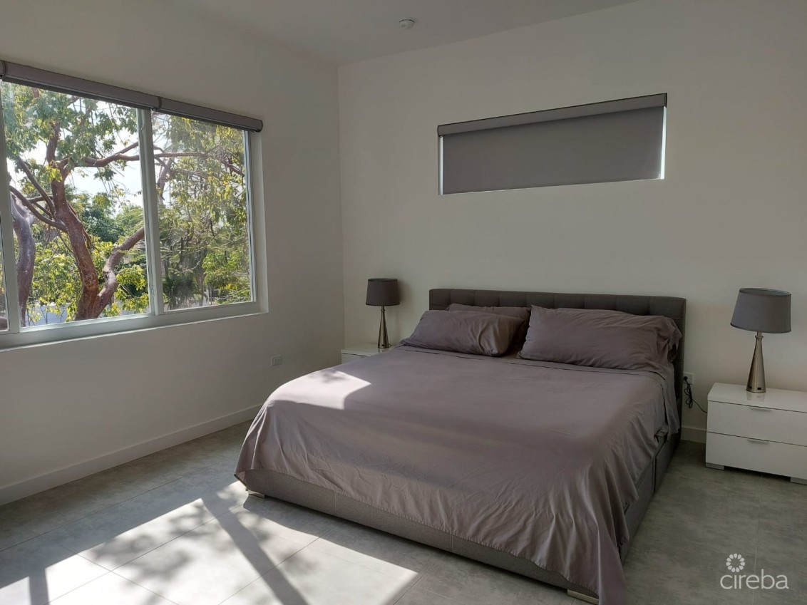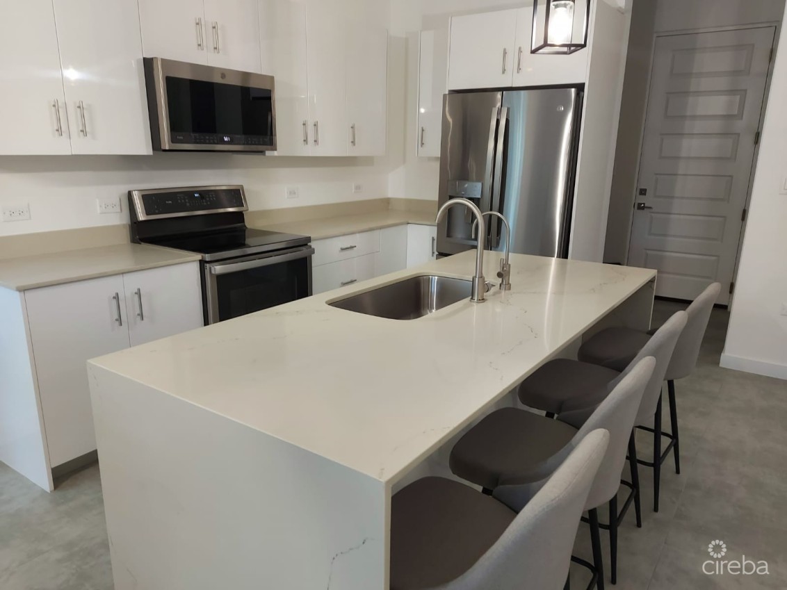 Conveniently located in the center of everything, 58-minute walk to the beach, 12 -15 minutes walk to Camana Bay, walking distance to the major supermarkets, restaurants, bars, coffee shop gyms yoga studio, spa, bus route & more. Open-plan living room, dining and kitchen with beautiful quartz counter tops and breakfast bar. Full stainless steel appliance package