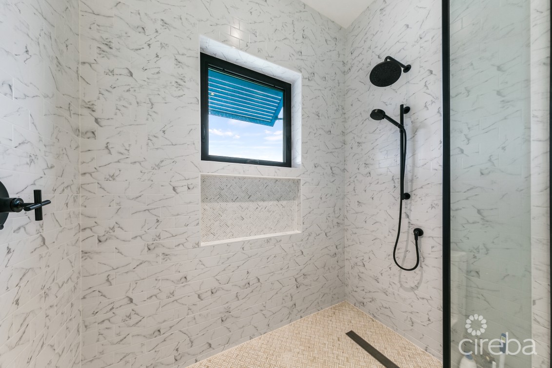 Thoughtfully appointed with high-end finishes throughout, the residence includes an indoor and outdoor garage, electric vehicle charging station, walk-in pantry, solar panels for energy efficiency, and designer furnishings curated by Cayman-based designer Anna Hislop. Located adjacent to Camana Bay and moments from Seven Mile Beach, Cayman International School, and the Town Centre, residents also enjoy access to OLEAs resort-style amenities including a pool with lazy river, fully equipped gym, and landscaped green spaces.