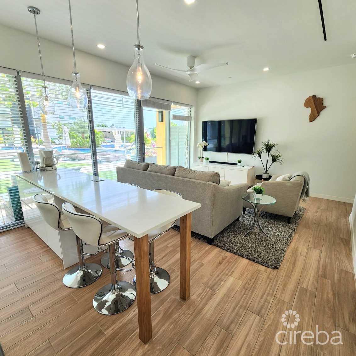 Ideal location! Set on a canal for water views, enjoy the stillness and quiet while taking in the sunrise. Yet only a 5 min walk to the beach & restaurants, 2 min drive for groceries, Camana Bay and nightlife.