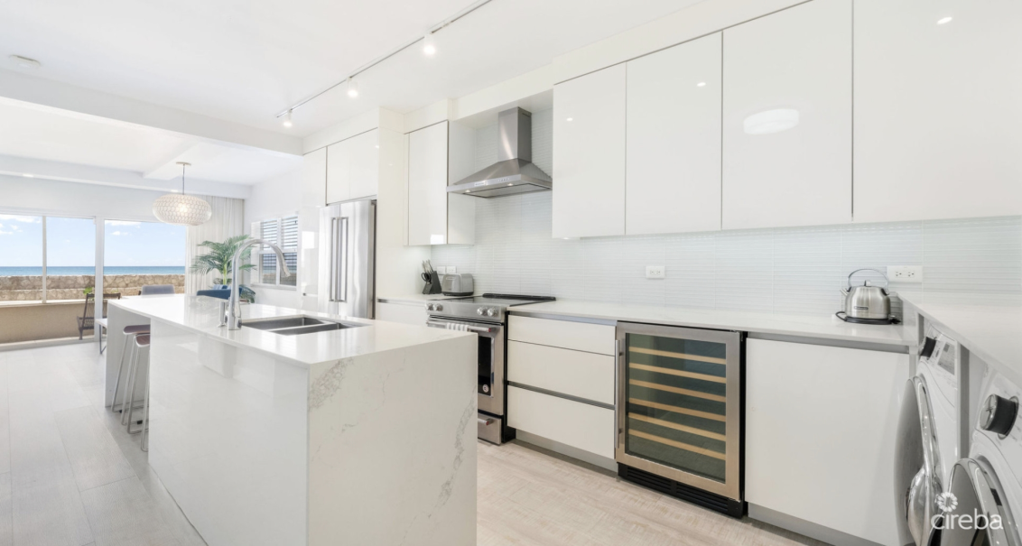 Discover this beautifully renovated ground floor condo located on the iconic Seven Mile Beach, now available for rent. No expense has been spared in the full remodel, offering a stylish, turnkey living experience in the vibrant heart of SMB.