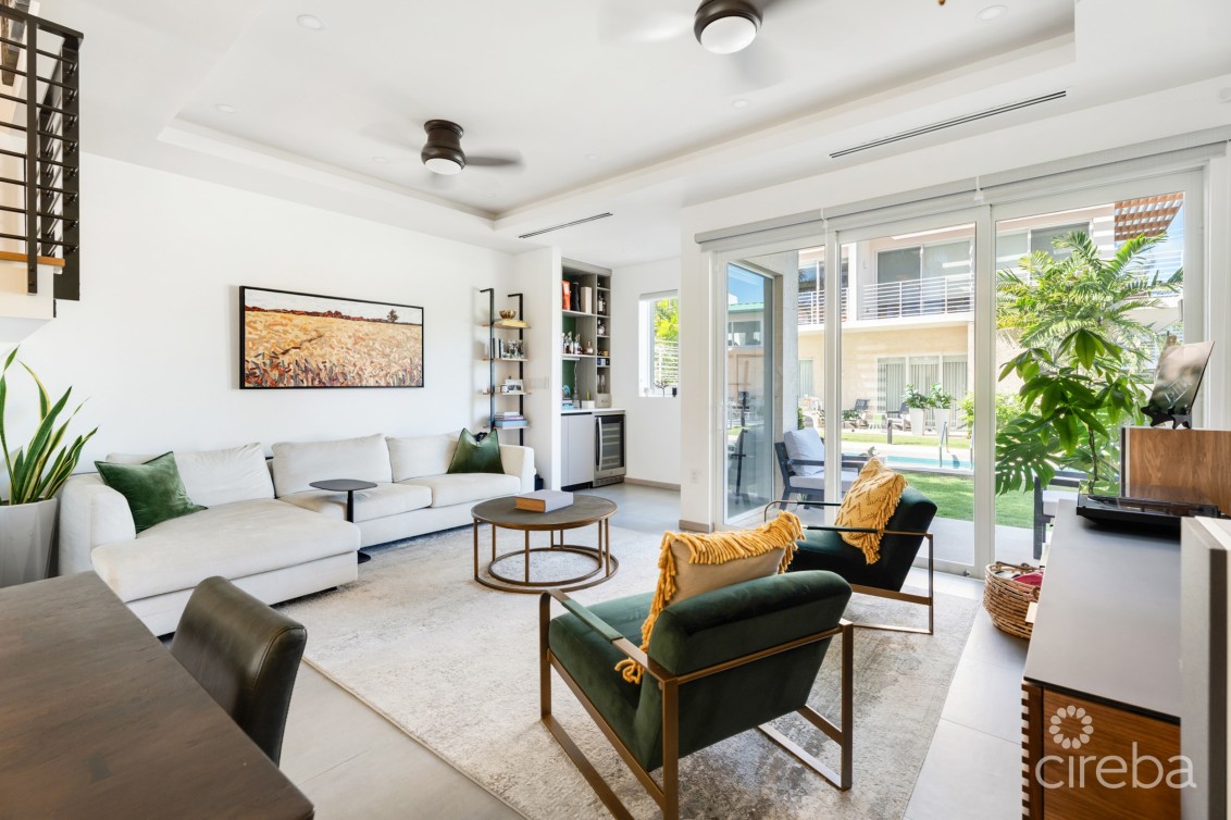 Plymouth is a gated boutique community of only 22 homes, offering an Olympic-sized pool, gym, BBQ areas, and landscaped gardens all just minutes from Seven Mile Beach, Camana Bay, restaurants, and golf. This home is pet and kid friendly.