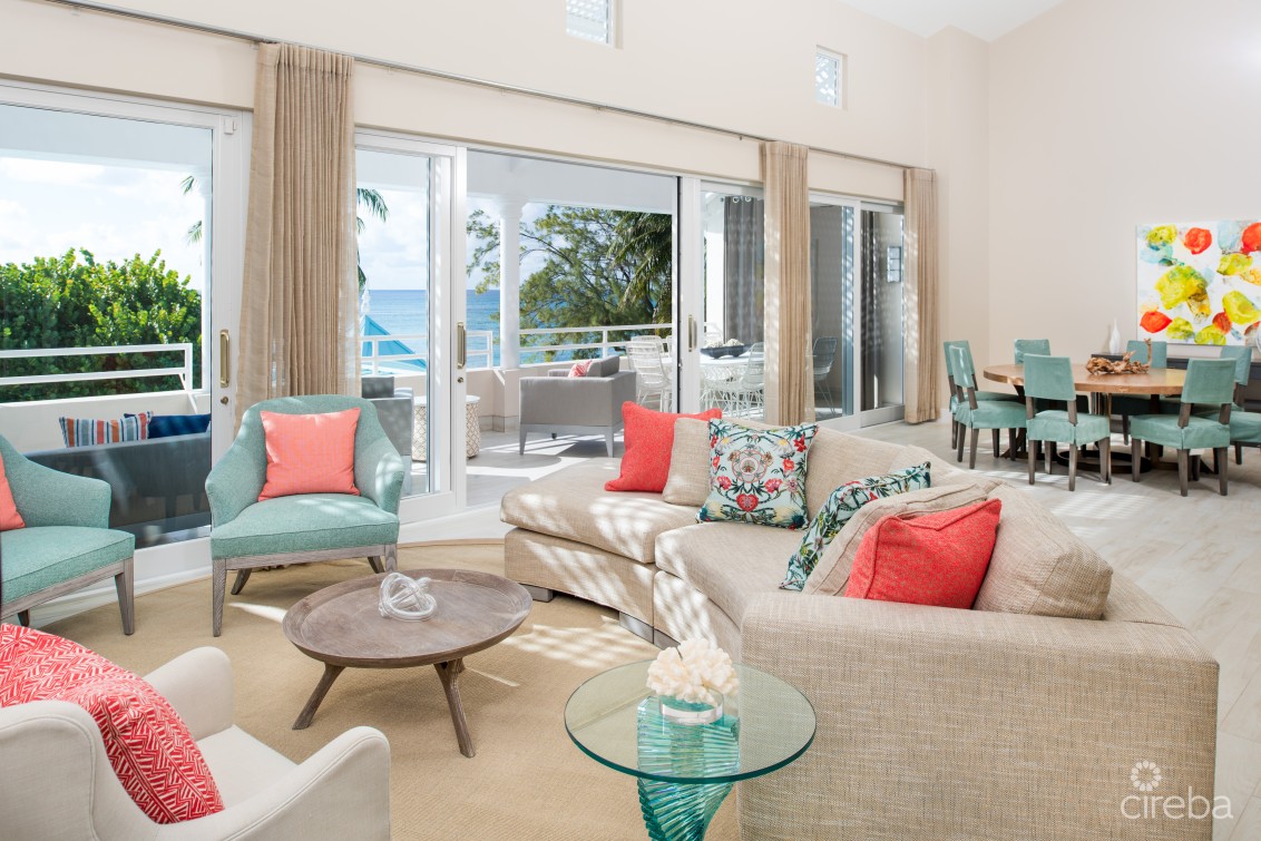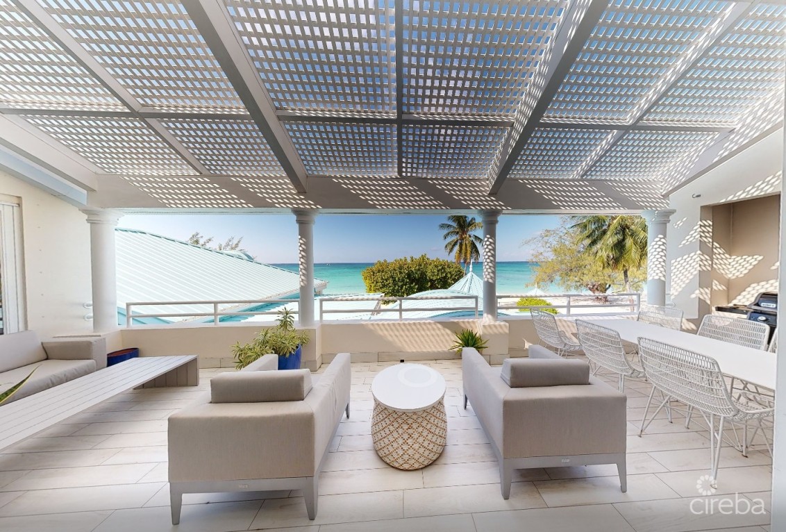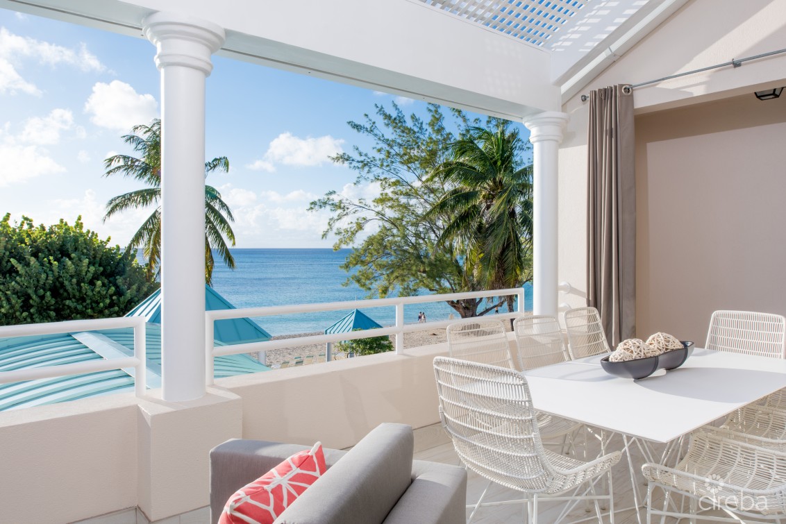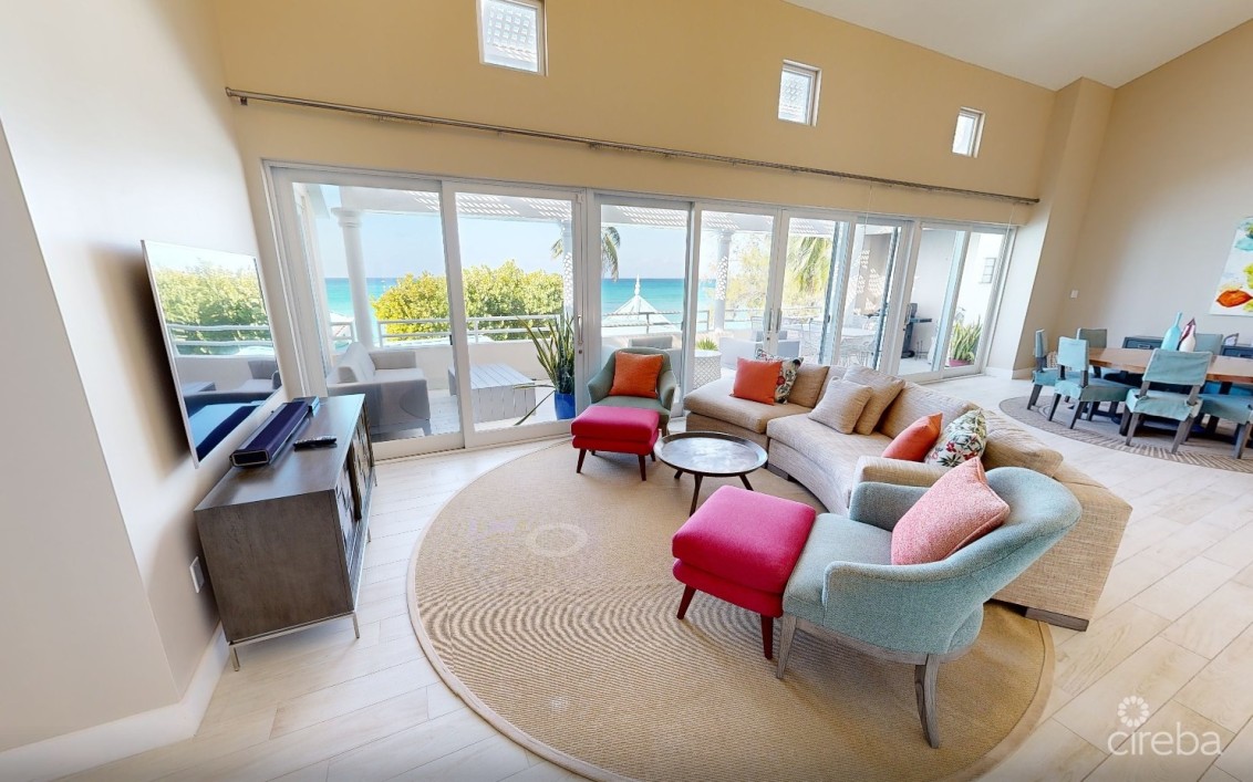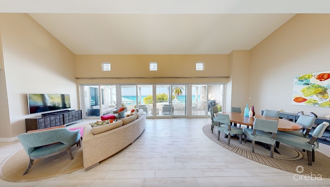 Experience luxury beachfront living at The Great House #24, located on the pristine sands of world-famous Seven Mile Beach. This fully renovated three-bedroom residence features soaring ceilings, a bright open-concept living and dining area, and a beautifully updated kitchen. New flooring, modern furnishings, upgraded appliances, and expansive balcony doors create a fresh, contemporary feel throughout, while the large outdoor terrace offers the perfect place to relax and enjoy views of the Caribbean Sea and lush tropical grounds.