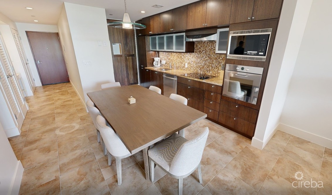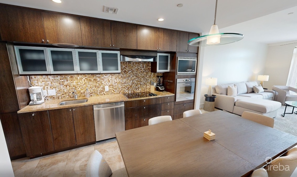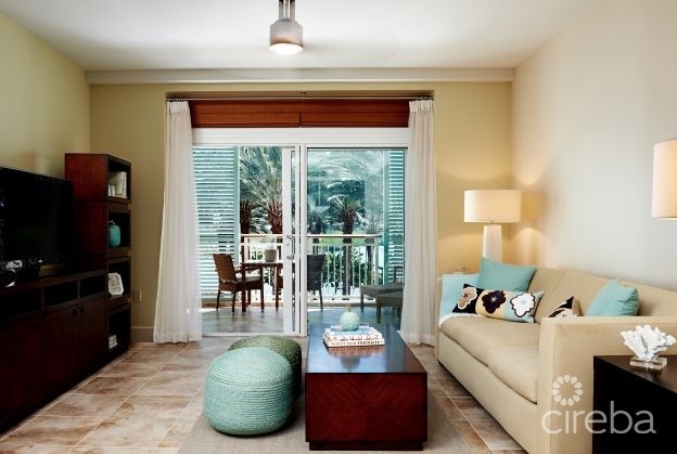 This two-bedroom apartment is located at The Terraces in Camana Bay. Featuring stunning views of the Seven Mile Beach, this second-floor unit is at the heart of the Town Centre, with easy access to shopping, dining, entertainment, and Seven Mile Beach. Pets are welcome.