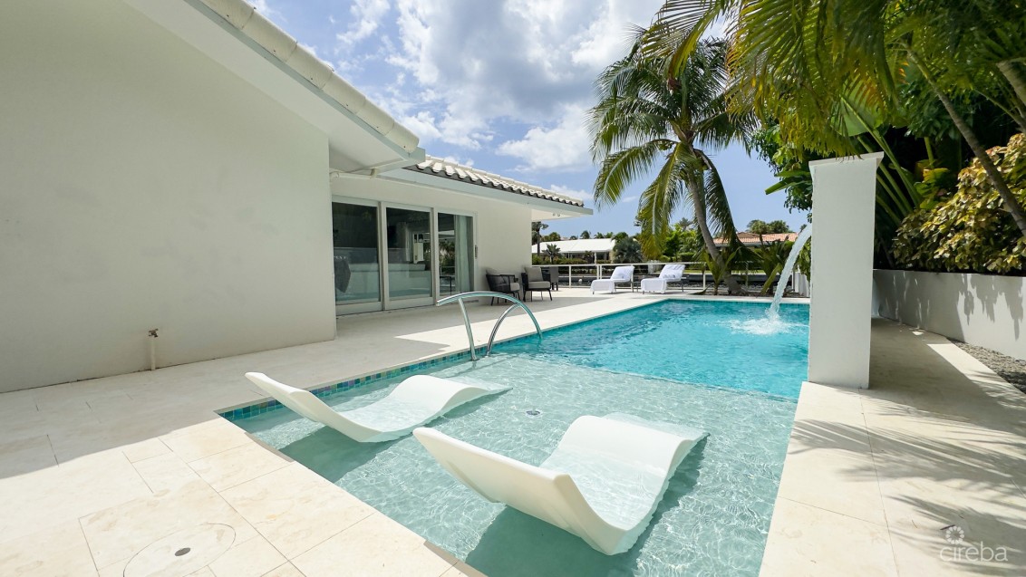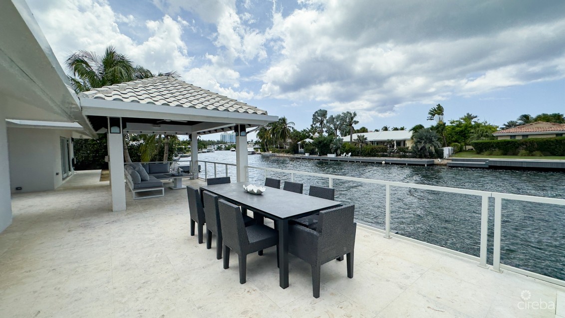 Step outside and the lifestyle continues. A resort-style vitality pool with swim jets and waterfall feature anchors the outdoor space, complemented by a spacious Baja shelf for relaxed afternoons in the sun. The expansive entertainment deck is ideal for al fresco dining, while your private dock offers effortless access to the North Sound and beyond.