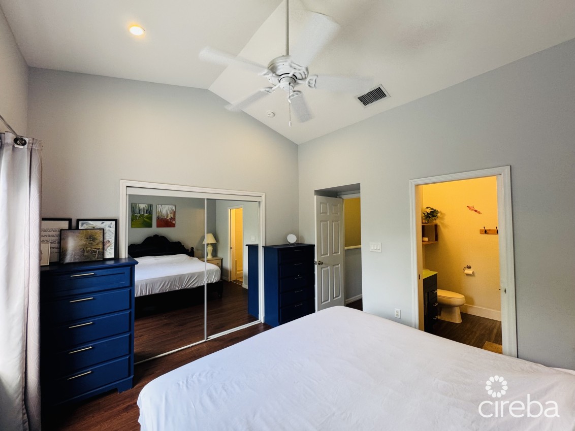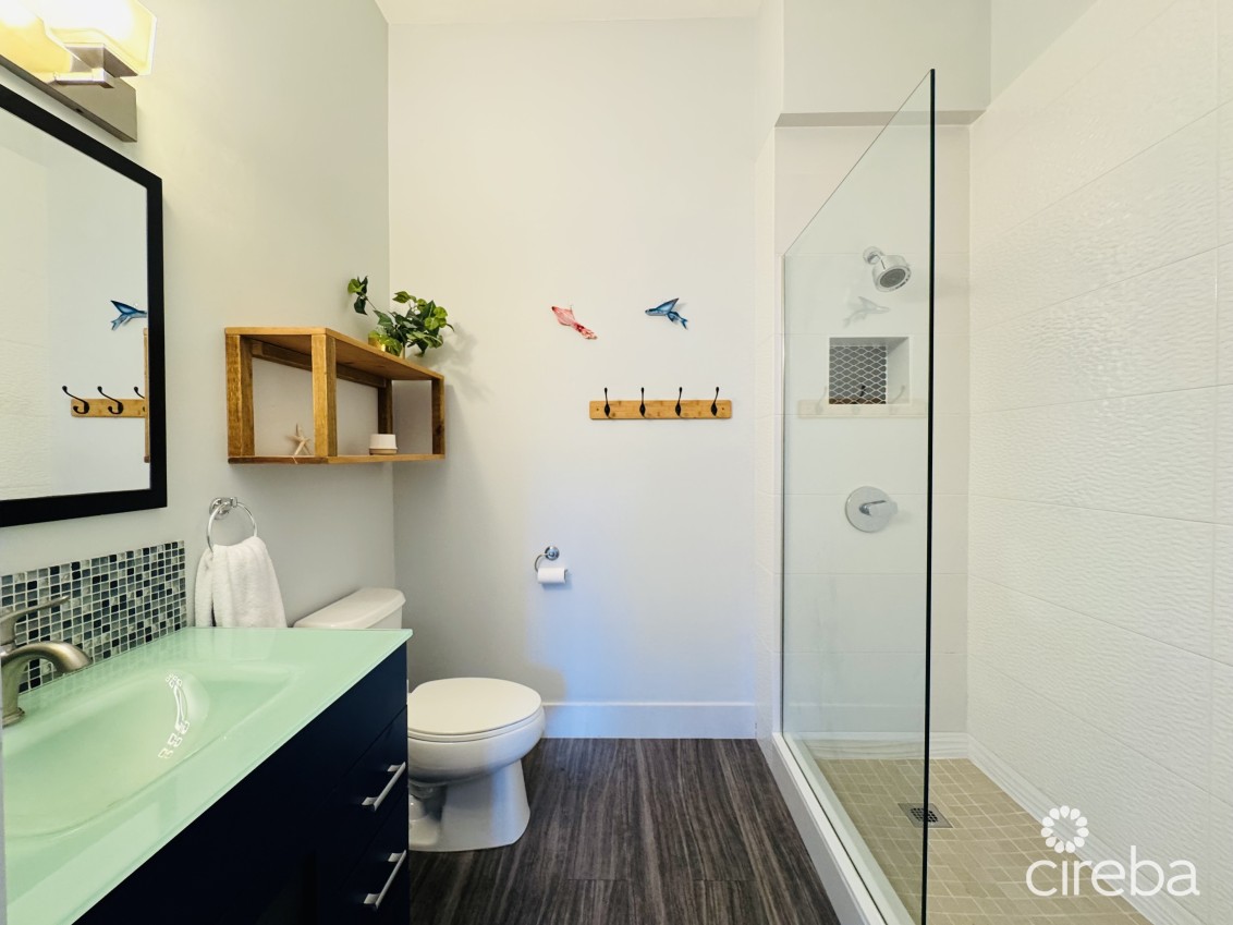 The home features modern finishes, with the living area on the lower level and both bedrooms and bathrooms upstairs. Lots of storage throughout.