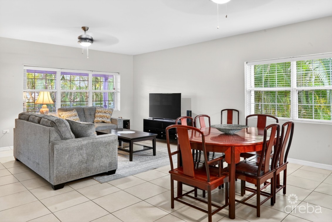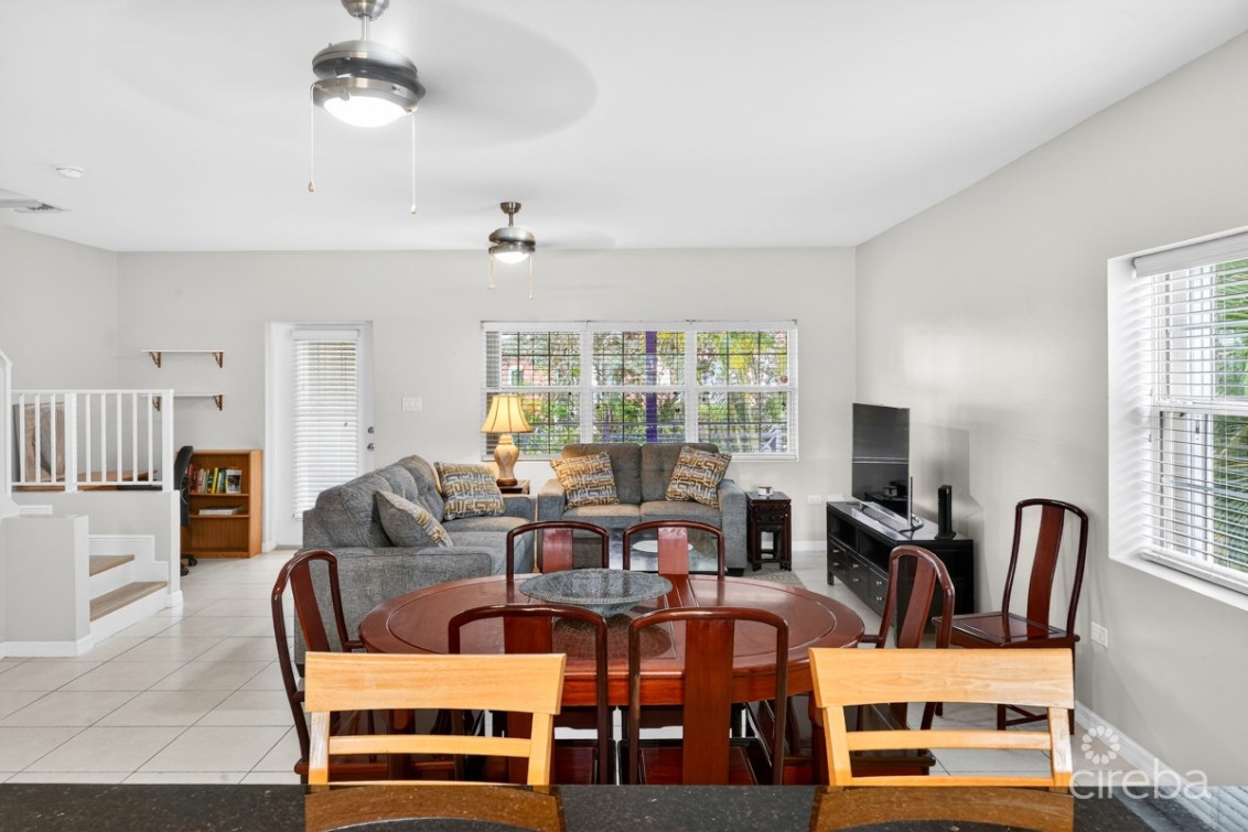 Island living at its finest in this beautifully remodeled 3-bedroom, 2.5-bathroom town home, ideally located at Cayman Crossing, South Sound, just steps from the sea and directly across from the scenic boardwalk.