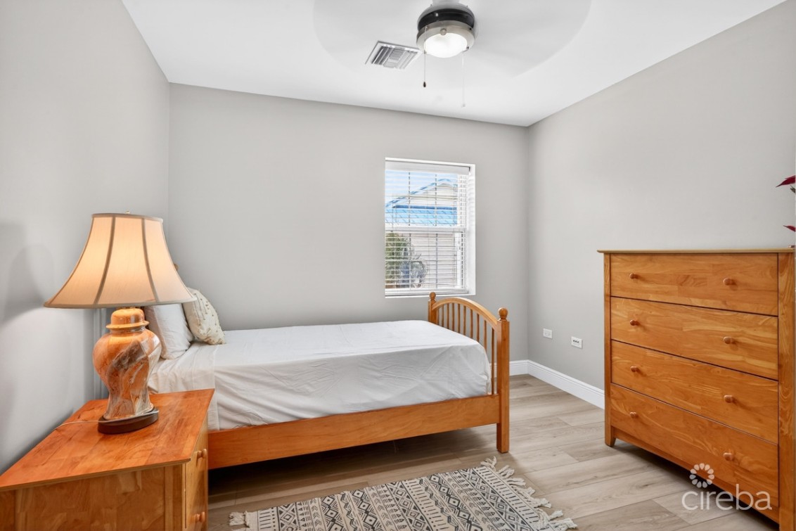 Residents of Cayman Crossing enjoy exceptional amenities, including two swimming pools, a fully equipped fitness center, and exclusive access to a sandy beach just across the road, complete with lounge chairs. The community also features green space for recreation, as well as a tranquil lake system where you can enjoy local wildlife, from turtles to seabirds.