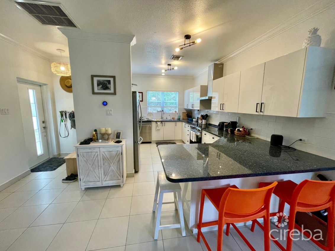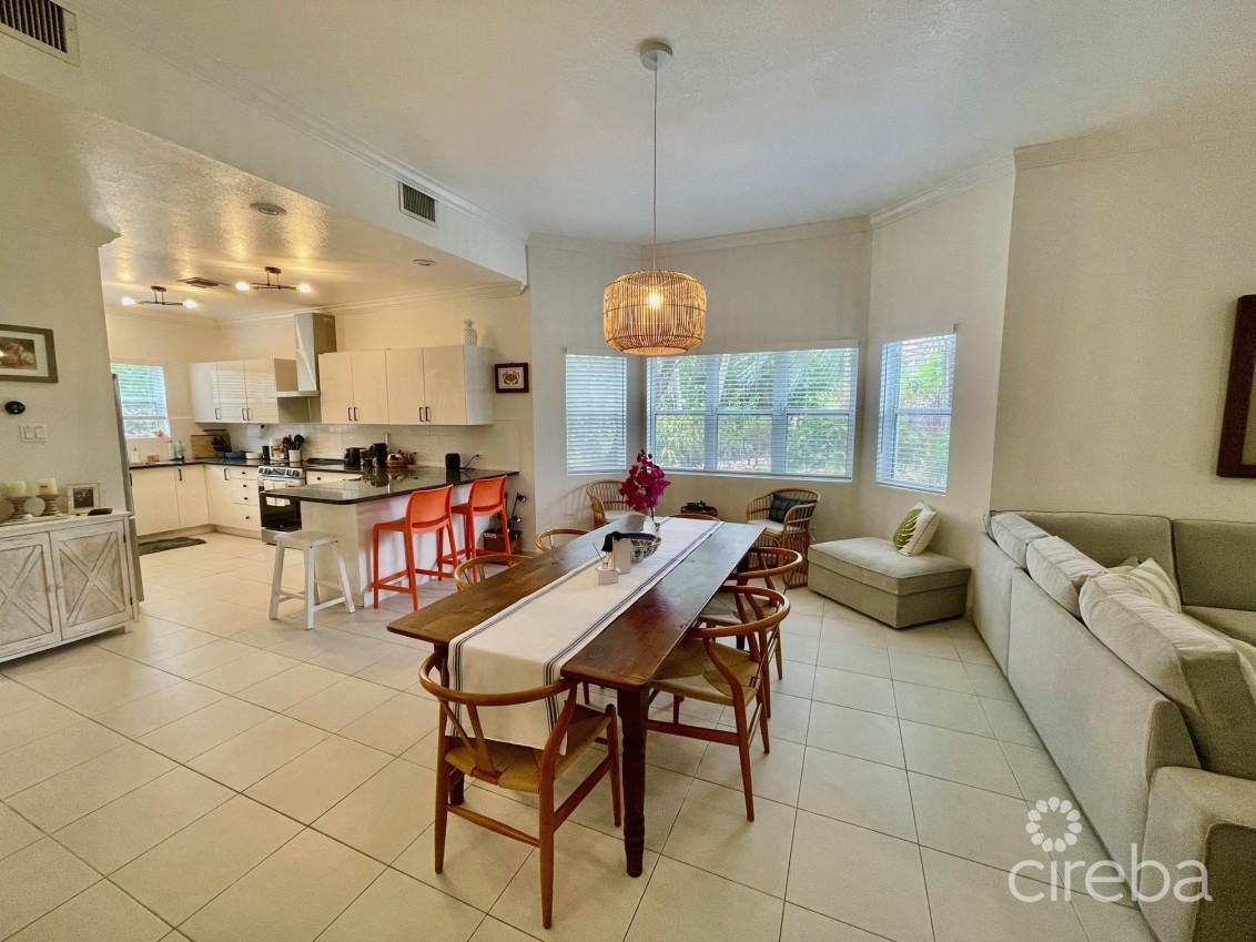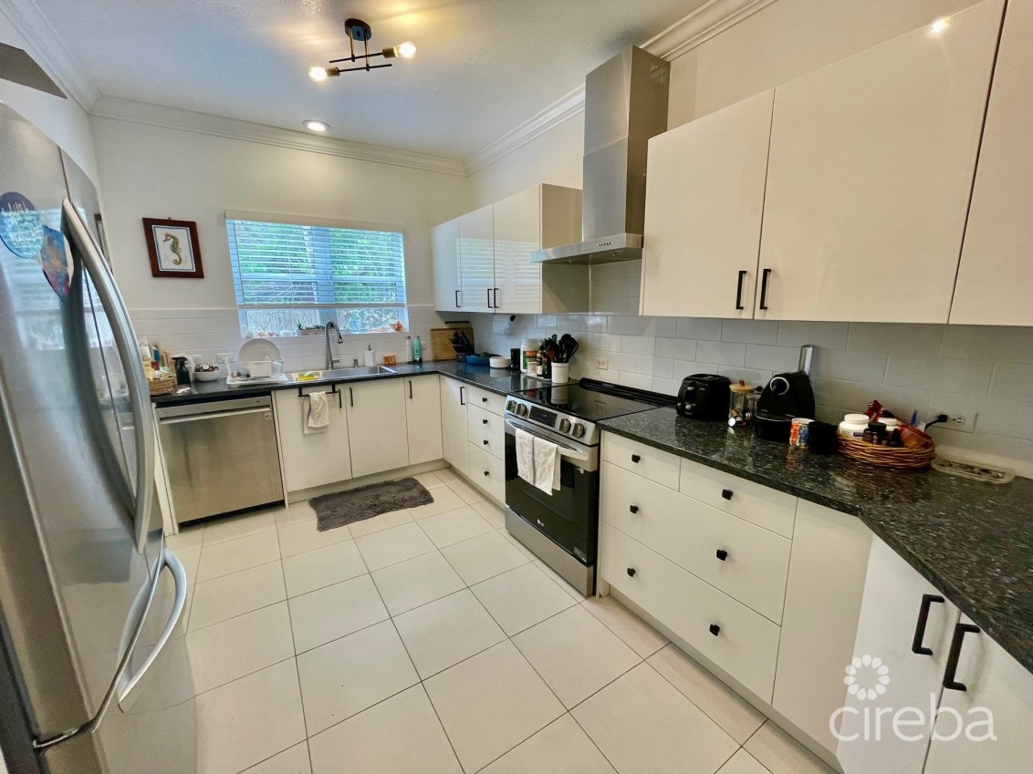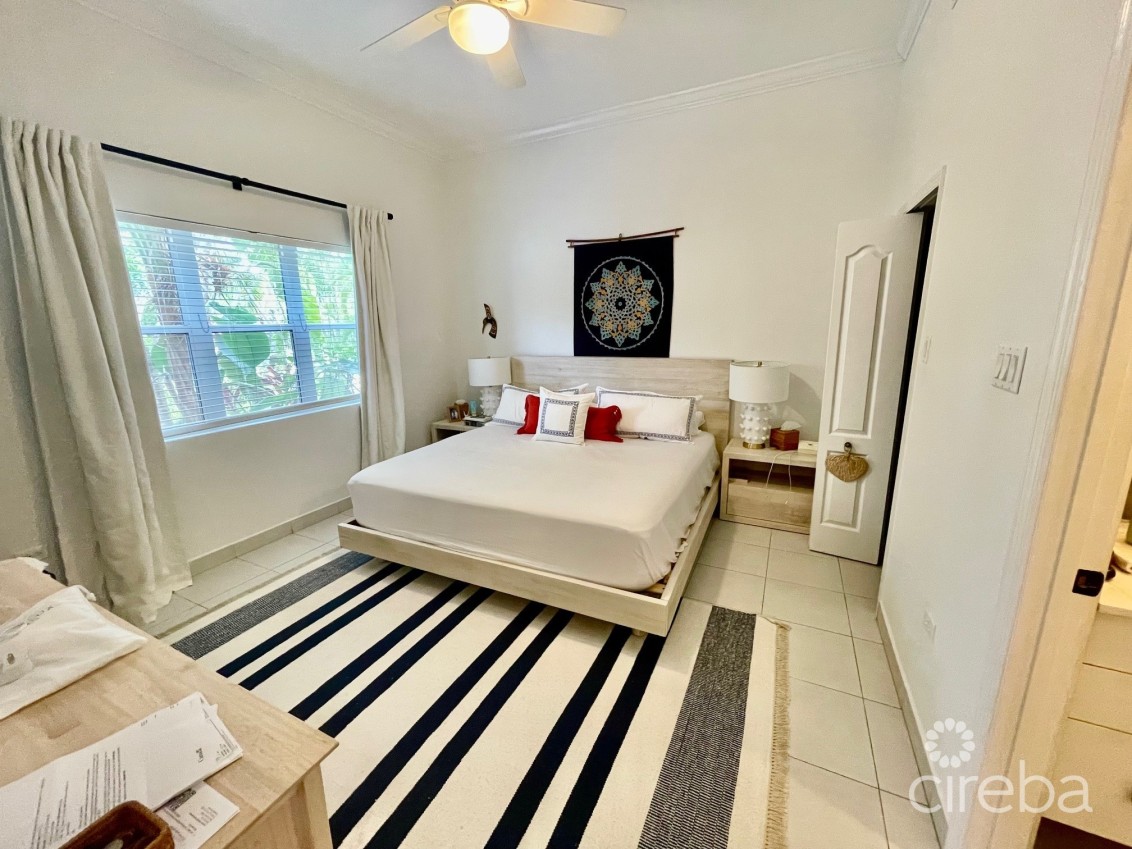 Absolutely lovely ground floor end unit at Grand Palms. This two bedroom, two bathroom residence is very spacious and private. Excellent kitchen with newer appliances, newer AC, new modern bathrooms. High vaulted ceilings and high end furniture throughout. This is a highly sought after development in a great area of South Sound/GT South. Walk to Smith Cove or Grand Old House or Sunset House.
