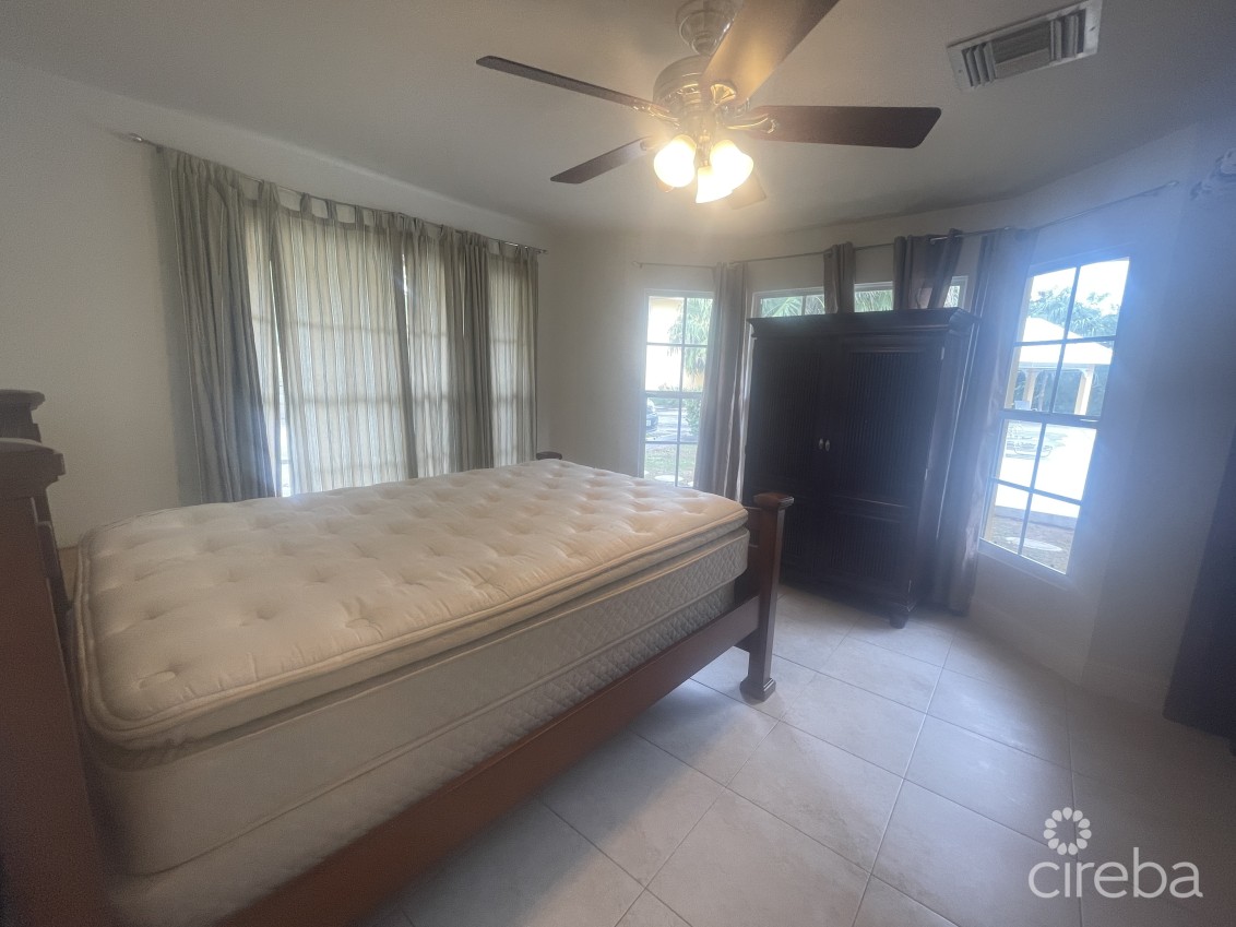 Just a few steps to St Ignatius and Prep high school, a great option for teachers or those with children attending schools in the area. Great for access to the beaches at South Sound and Smith Cove as well as the walking track and sporting facilities at Truman Bodden. This is a spacious 3 bedroom condo it is an end unit with one bedroom/den on the ground floor.
