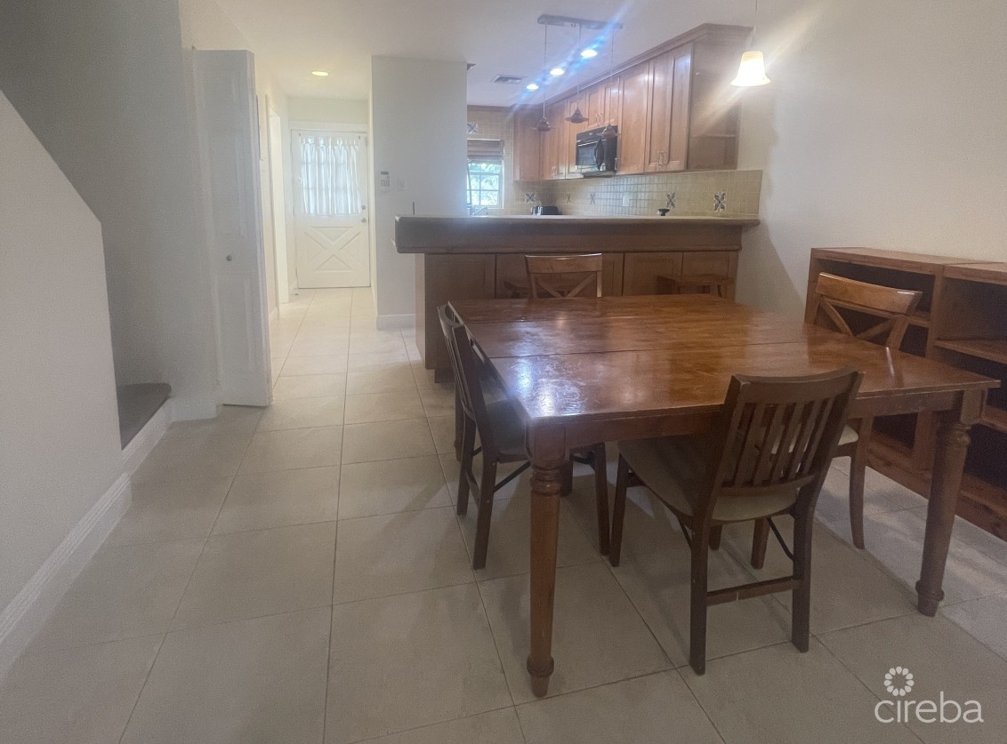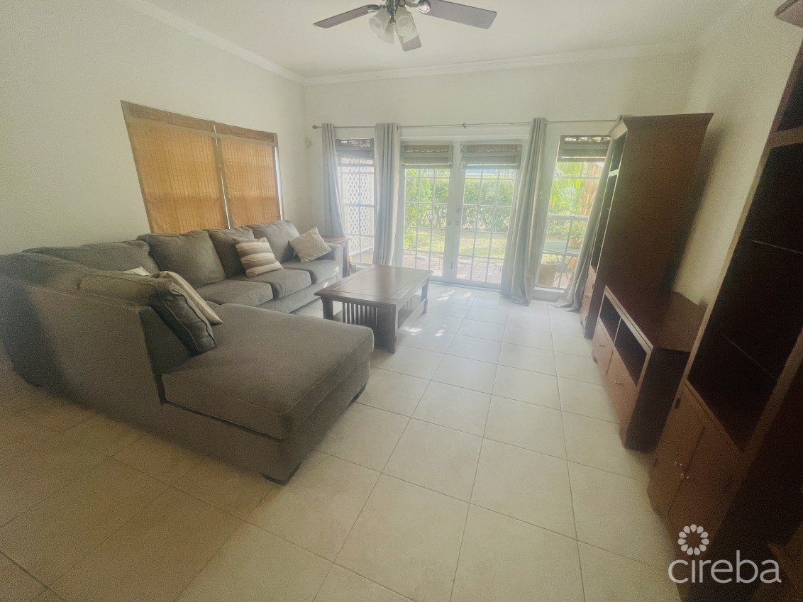 Just a few steps to St Ignatius and Prep high school, a great option for teachers or those with children attending schools in the area. Great for access to the beaches at South Sound and Smith Cove as well as the walking track and sporting facilities at Truman Bodden. This is a spacious 3 bedroom condo it is an end unit with one bedroom/den on the ground floor.