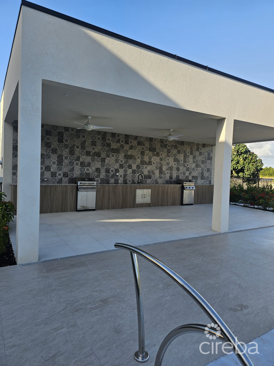 The complex has an 80FT pool with a shaded gazebo, BBQ Stations, walking area for pets & a kids splash park.