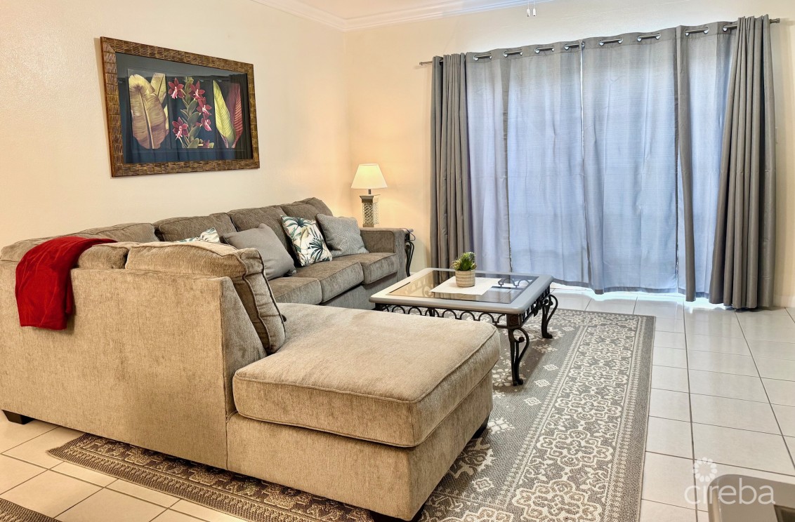Location, Location, Location. This large 2 bedroom 2.5 bathroom, nicely furnished Town Home is located just across the street from world famous, Smith Cove, and is just minutes away from down town, Camana Bay and the Seven Mile Strip. Utilities Separate. Available Now.