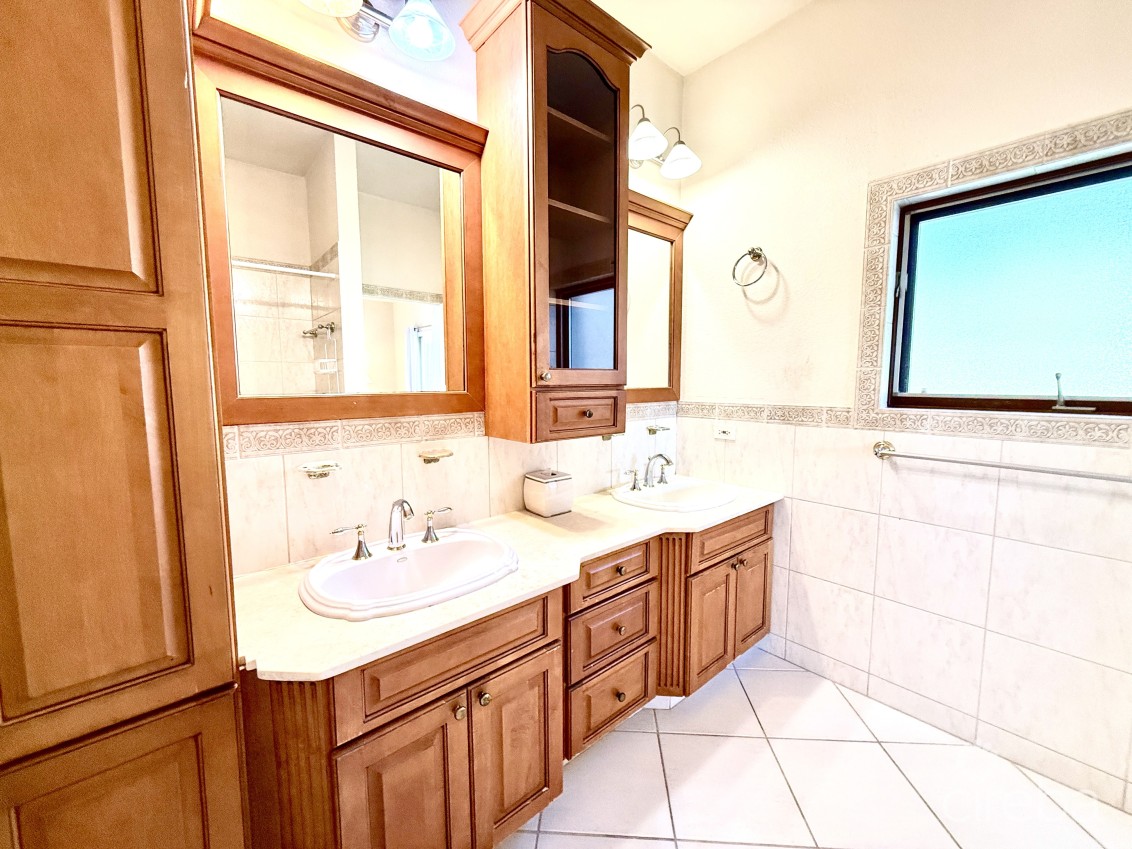 The 3,190 sq foot home features plenty of light and two living areas that open onto a a new private pool with deck, gazebo and lush garden.