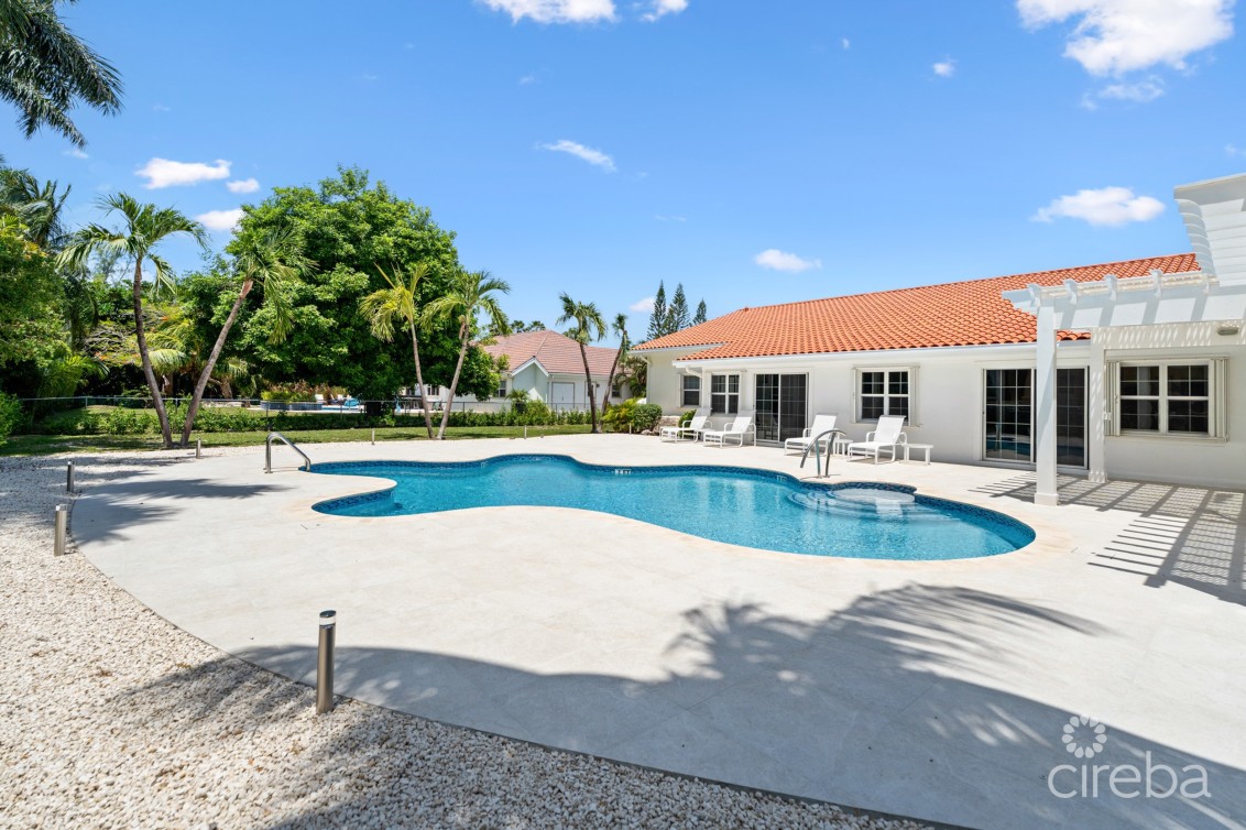 Fabulous location on a large corner lot in The Avenue of South Sound with lots of wide open green space in front of the residence. Newly updated furnishings, flooring and more have been completed for this spacious home with 3 bedrooms, 3.5 bathrooms, double car garage, oversized utility room and lots of additional storage areas -perfect family home where everyone has room to spread out. Enjoy the charming patio overlooking the garden and swimming pool. With almost half of an acre, there is an abundance of space outside for entertaining & for a children's play area. Ideally located near to Georgetown, Grand Harbour, Harbour Walk and Schools.