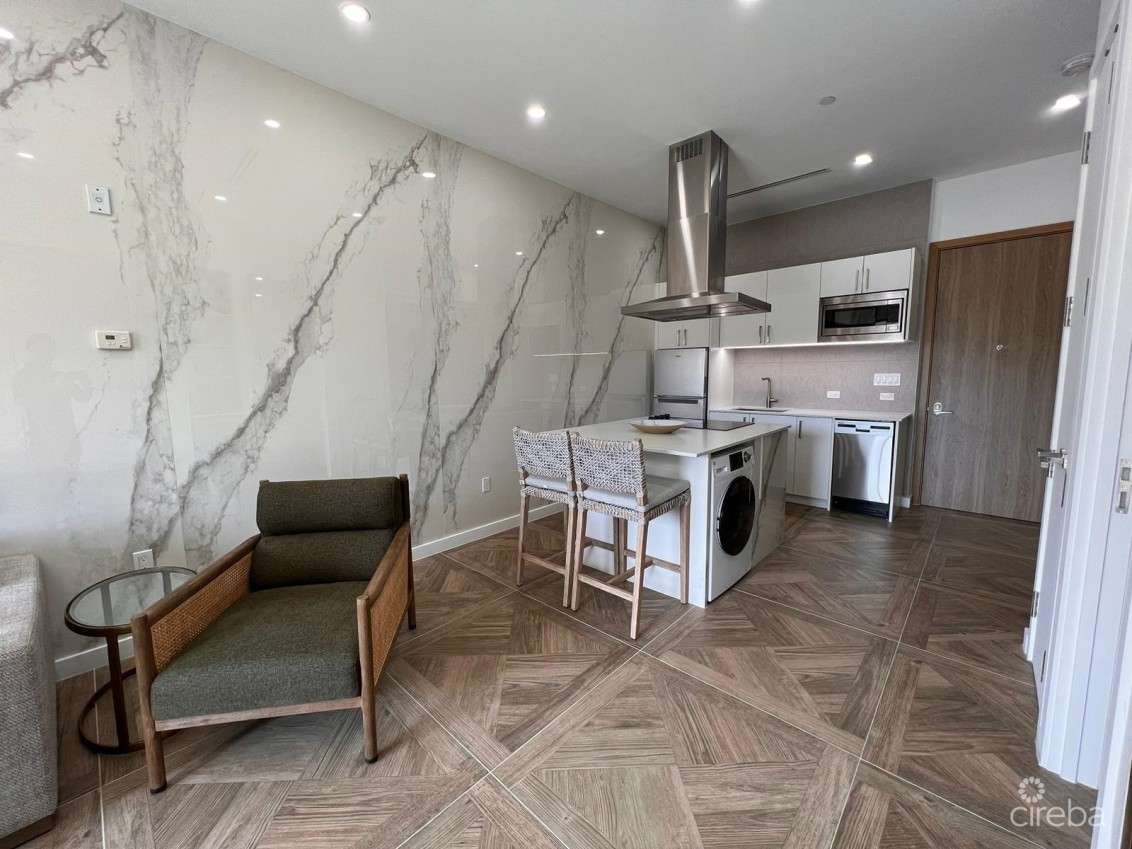 Nestled in the heart of Grand Harbour, this brilliantly fully furnished 3rd-floor apartment is a gem within a vibrant, family-friendly development. Boasting a spacious layout with 1 bed, 1 bath, and an additional den, the apartment offers a perfect blend of comfort and style. The modern kitchen features elegant quartz countertops, while the convenience of a compact washer/dryer and a stylish bar area adds to the allure of the space.