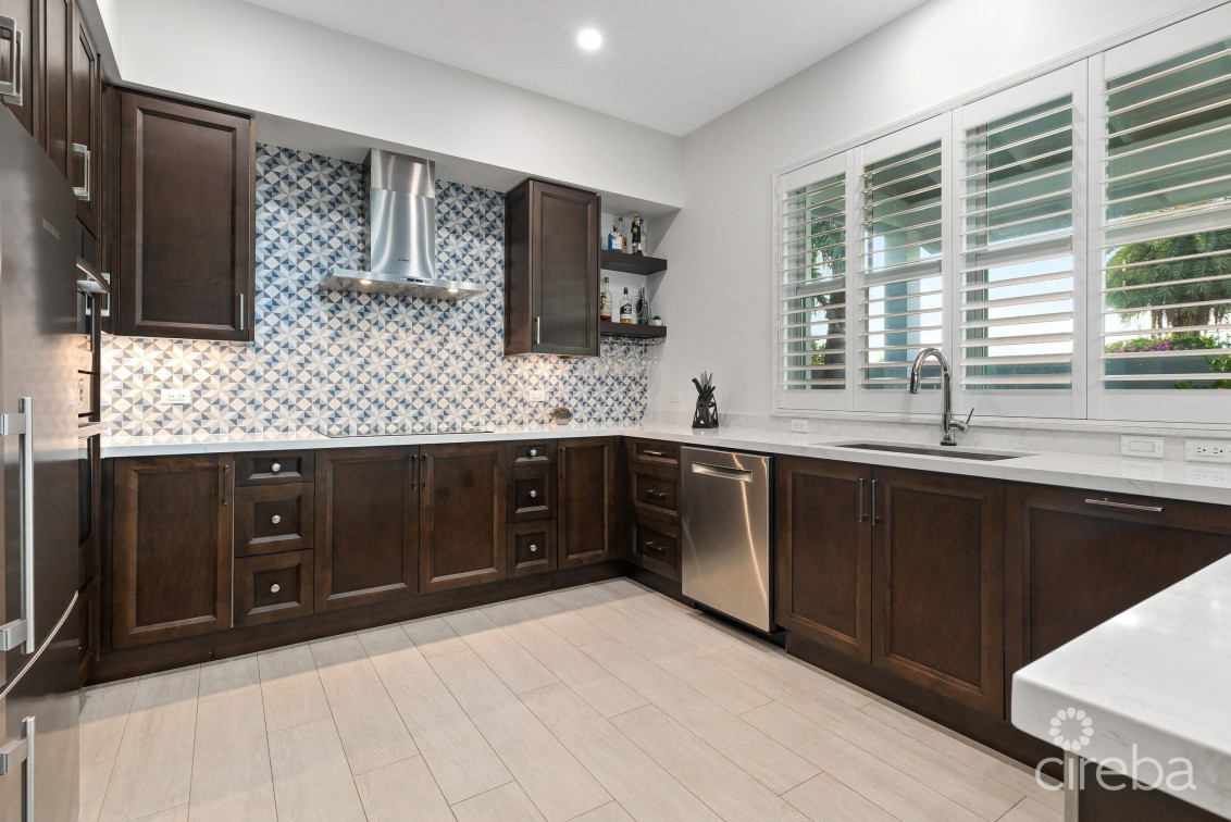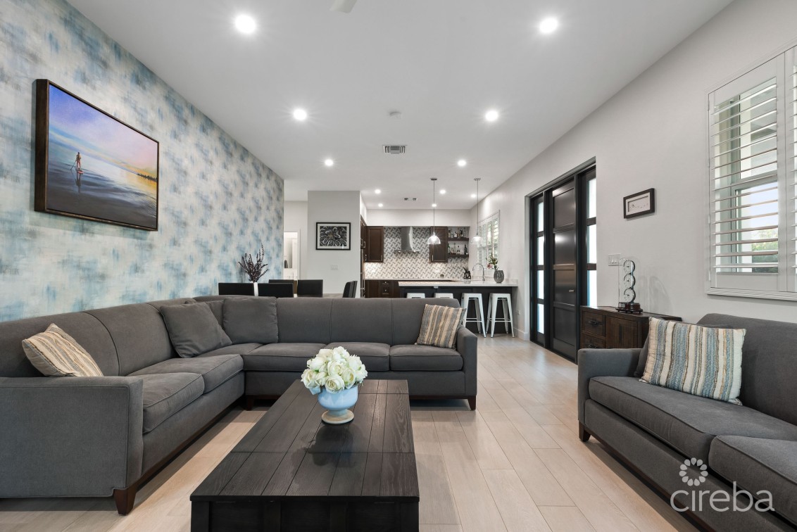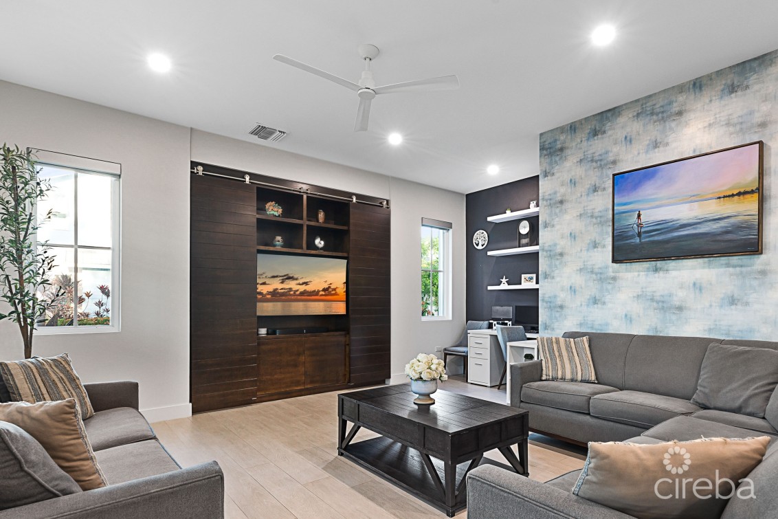 Designed for comfortable, modern living, this home features a bright, open layout with a contemporary kitchen complete with premium Bosch appliances, induction cooktop, Liebherr fridge, and an under-counter wine fridge. Custom built-ins, plantation shutters, and thoughtfully designed storage throughout add both style and functionality. The home also includes a whole-house water filtration system with booster pump, custom closets, ample storage throughout and a large garage with built-in storage solutions. Rent includes CUC electricity, providing added convenience and predictable monthly costs.