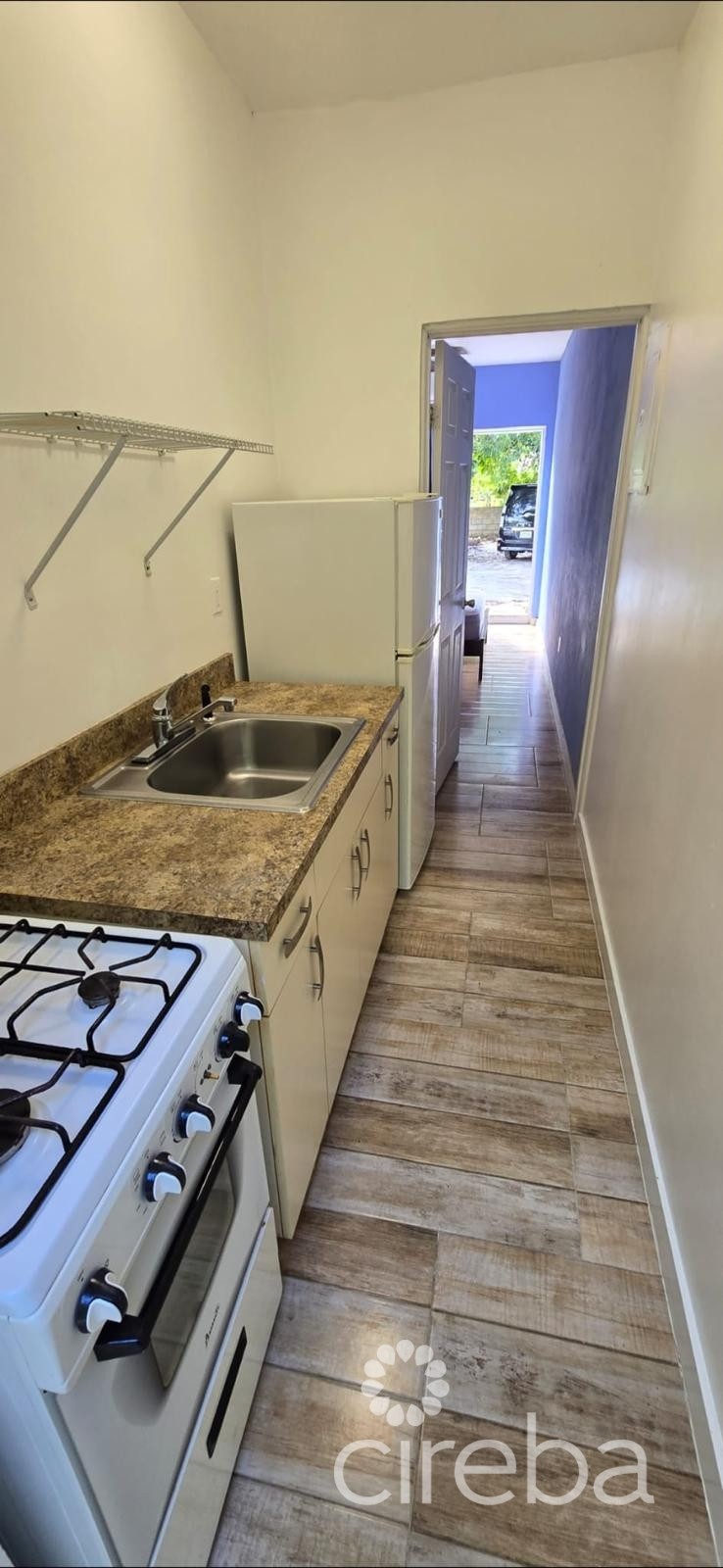 1 bedroom studio with its own kitchen and bathroom.