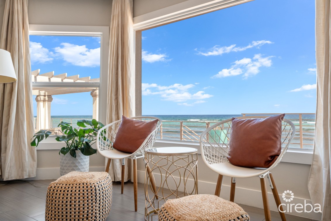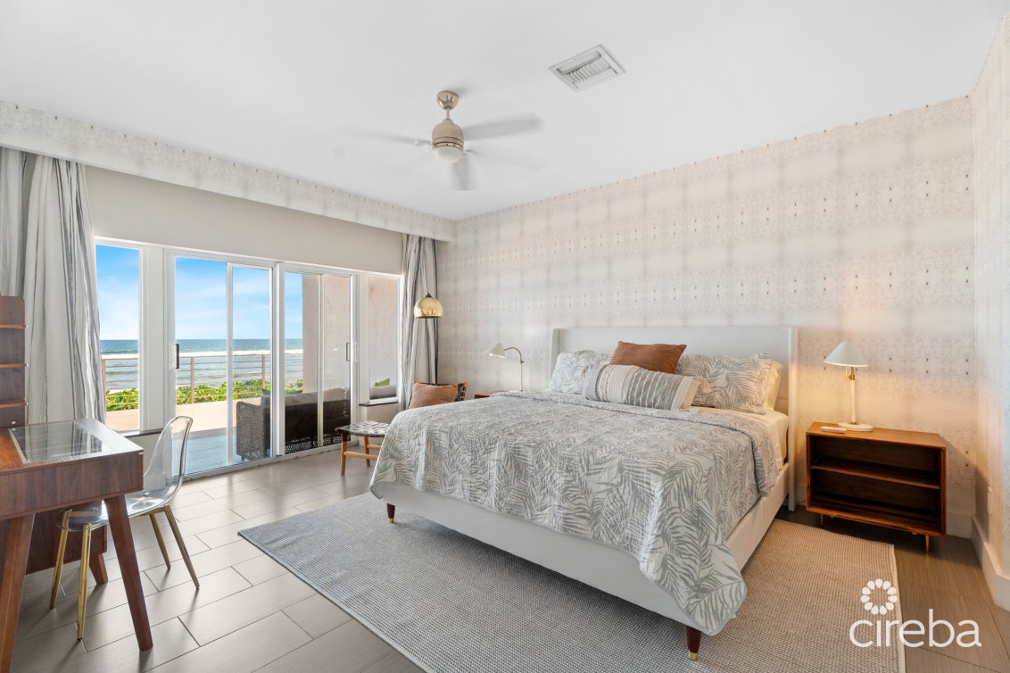 Ensuite bathroom featuring a relaxing soaking tub. Master offers direct access to the sea front patio.