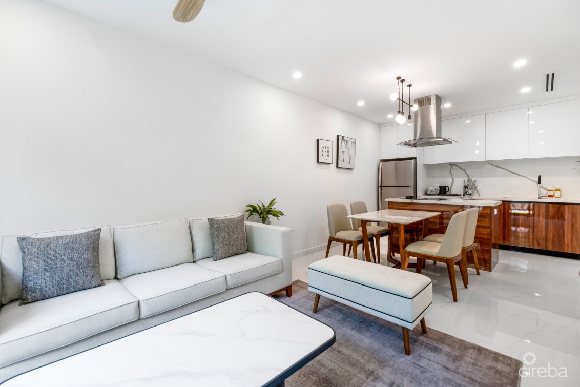 Step into a world of contemporary design and sleek finishes that create a stylish yet comfortable atmosphere. Your private green space and patio provide the perfect spot for morning coffee or evening relaxation under the Cayman sky.