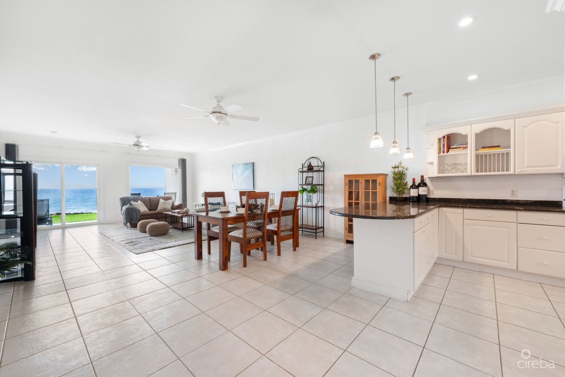 The generously sized kitchen is perfect for entertaining, while the open concept layout allows for seamless indoor/outdoor living. Step onto your private oceanfront patio, feel the refreshing sea breeze, or unwind by the oceanfront pool.
